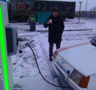 И вот после Нового Года от фирменного столбика подзарядилась Электро-Таврия (автор Батискаф). Правда перед этим пришлось подготовится и припаять к обычной вилке зарядки Электро-Таврии переходник. Просто так станция на своих разёмах напряжение не поддерживает. Для включения требуется замкнуть через сопротивление два отдельных контакта. После чего станция на ОККО стала выдавать 220/380 50Гц.