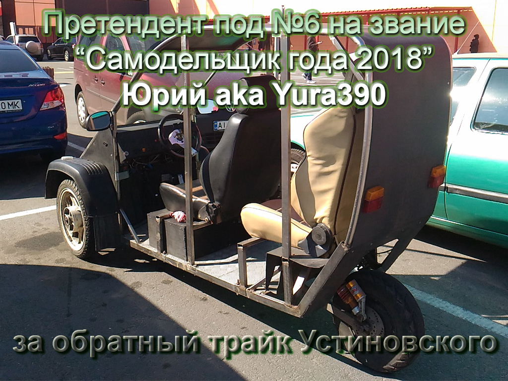III место занял Юра aka Yura390 за обратный трайк Устиновского. Одна из самых удачных конструкций двухместного обратного трайка каждодневно эксплуатируется автором. Пробег уже превысил 40тыс.км. что само по себе говорит об удобстве и надёжности конструкции