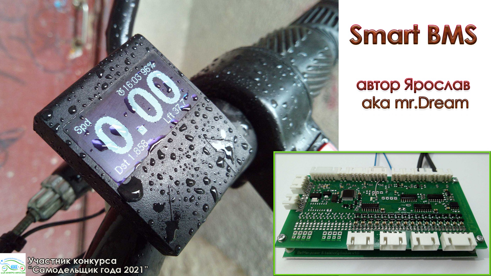 Smart BMS, автор mr.Dreamviewtopic.php?f=115&t=4624В этом году лёгкий электротранспорт на конкурсе представлен одной из лучших БМС – велокомпьютеров. В нём есть всё – от диаграммы напряжений ячеек до часов, от температуры на всех важных узлах до прогноза времени зарядки.