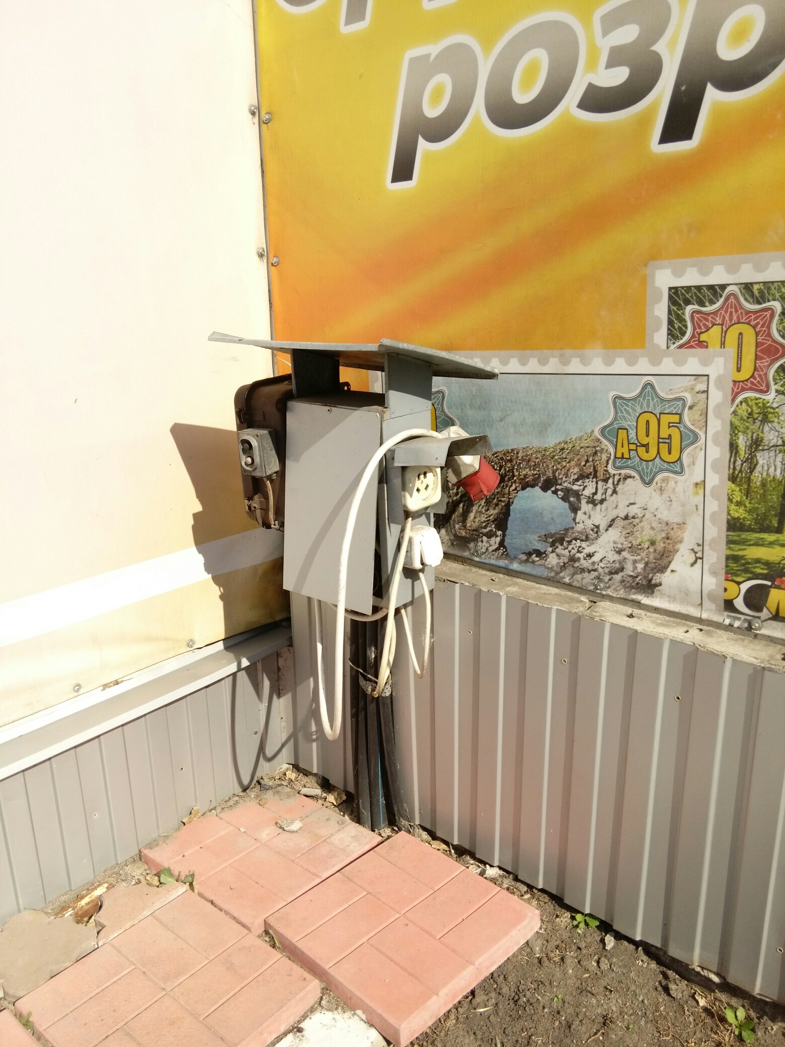 Шли километры, но ничего я так и не присмотрел. Только на 108-м км, остановившись на местной заправке Sun Oil в с. Липовець, удалось найти розетку. Но радость моя была недолгой. Мои 4 квт ЗУ, через 15 минут всё таки побороли автомат, и зарядка прекратилась.