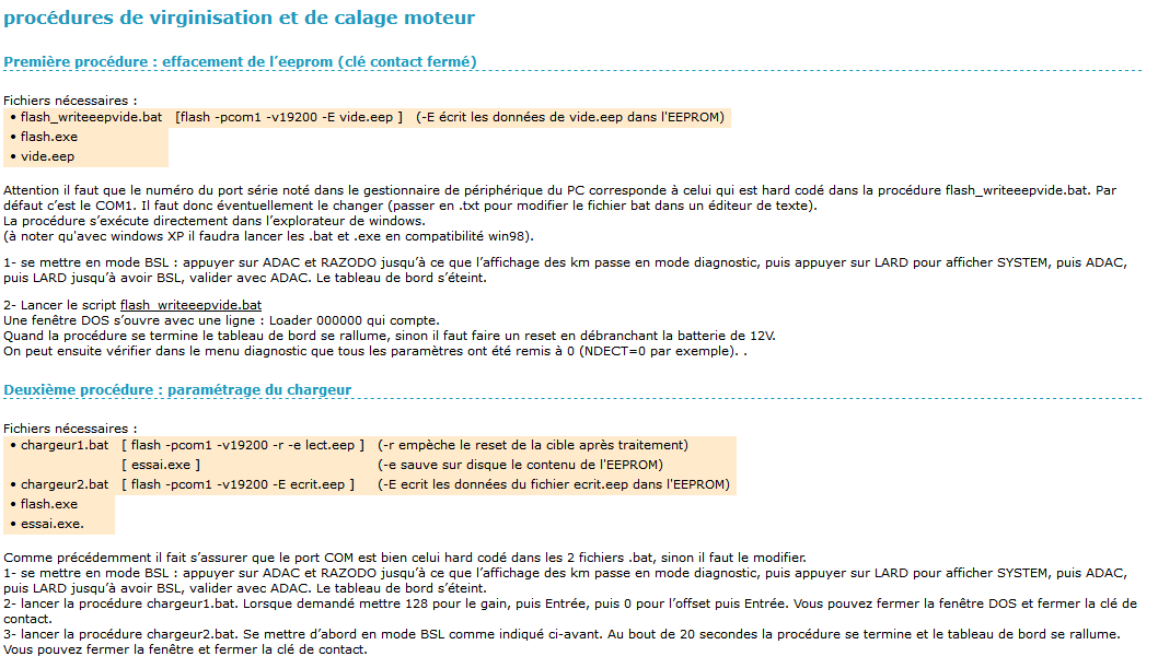 • chargeur1.bat [flash -pcom1 -v19200 -r -e lect.eep] (-r предотвращает перезагрузку [ЭБУ?] после выполнения, «lectURE» = «чтение»)