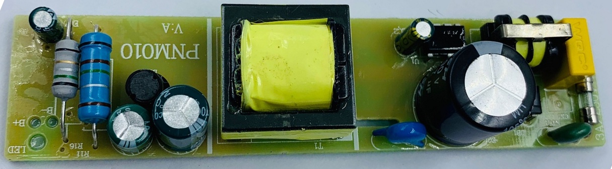 Высоковольтная часть собрана на силовой ШИМ микросхемке у которой срабатывает защита (выключение с последующим перезапуском) на мощности >27Вт. На низкой стороне после диодного выпрямителя стоит микросхема контролирующая выпрямленное напряжение и ограничивающая выходной ток(первый шунт) посредством обратной связи с высоковольтной частью через отптопару. По умолчанию там чуть более 9 вольт и токоограничение 1,3а . Далее стоит микросхема контроля тока(второй шунт) и напряжения специально предназначенная для заряда аккумуляторов 2S, управляет отдельным выходным мосфетом, держит 8,4в.