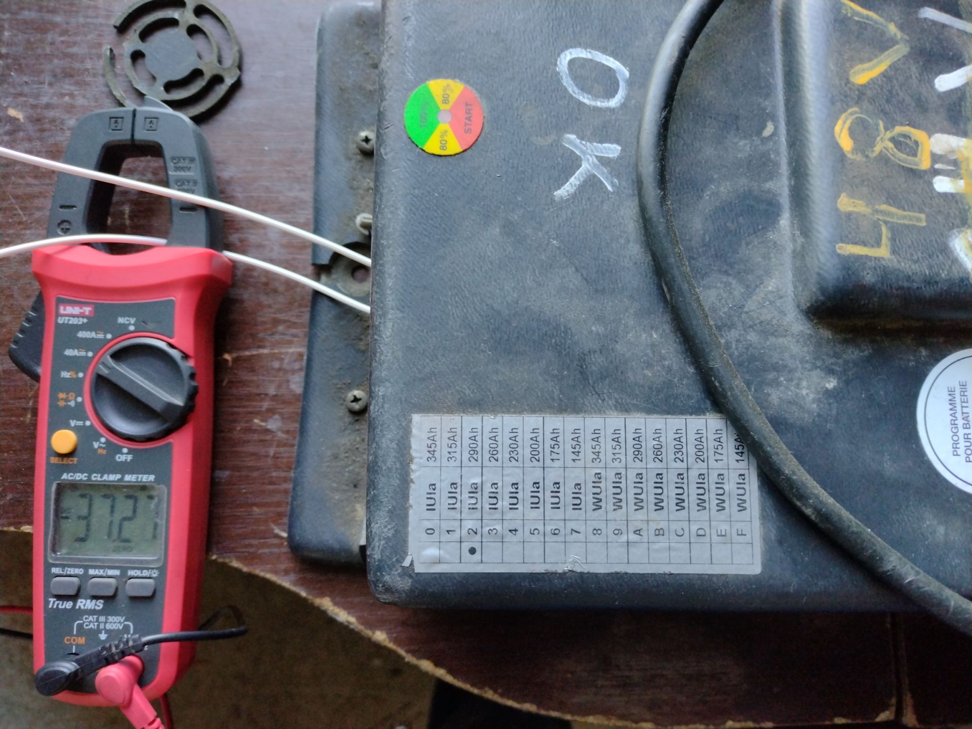 На фото проверка работы на Вольтовский аккумулятор, на котором было 49В. Для такого напряжения зарядка автоматически выбрала режим добивки >80% с током 36 (реально 37) ампер. Долго не заряжал, т.к. сами видите сечение проводков, но по ощущением зарядка в полном порядке