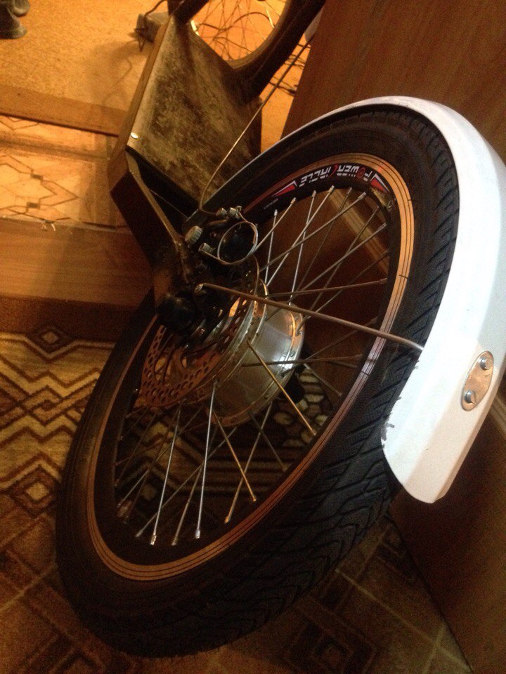 Мотор заспицован в обод 20" с усиленной спицей.