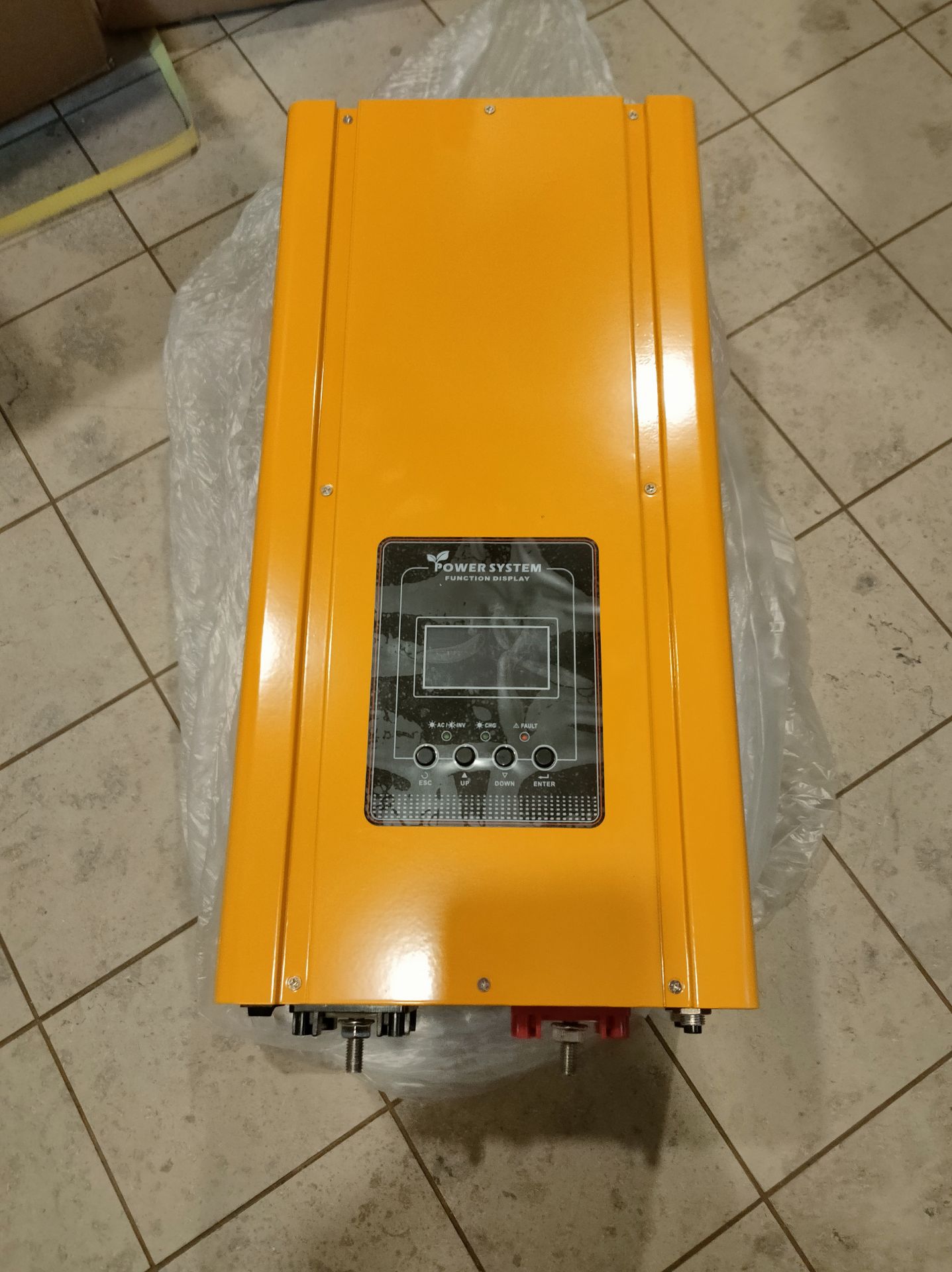 Інвертор новий, включався один раз. Продається через заморозку проєкту на довгий термін. Перевіряв розряд та заряд, налаштування порогів в меню - все працює.