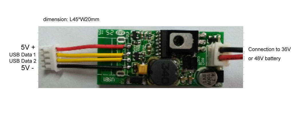 Например на ОЛХ можно купить "ЮСБ зарядка для электровелосипедов" 36-100В в 5в 1А с корпусом продаются по 50грн.