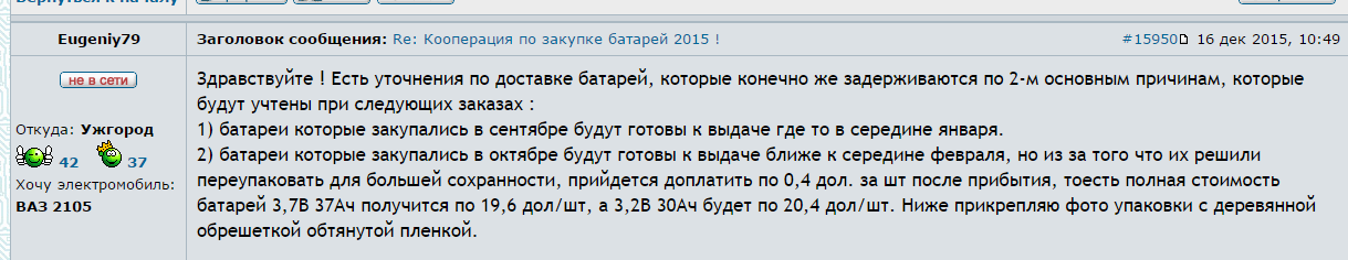 Заголовок повідомлення: Re: Кооперация по закупке батарей 2015 !