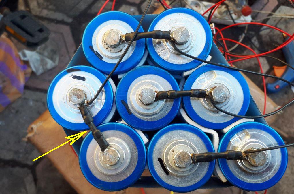 Это не прокладки,это двухсторонний скотч которым склеил перед сборкой батарею. Прокладки между ячейками делал из лакоткани. Перемычки из многожильного провода и они не внатяг. А вообще время покажет.