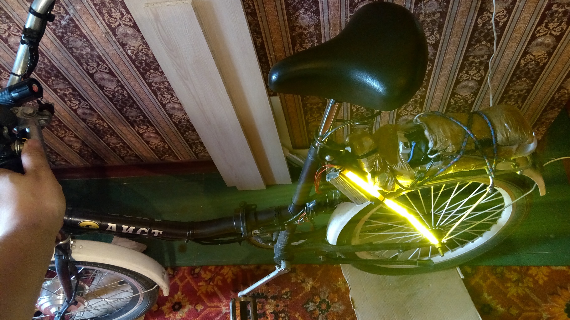 Продам набор для електровелосипеда,покупался в веоле ,изначально в 20ти дюймовом ободе для Аиста(спицы и обод ещё есть). Видео о нём и как ездил https://www.youtube.com/watch?v=LMVSjzgnA-U ,В комплект входит : Мотор колесо редукторное 36в 350ватт (на переднюю вилку без отверстий для дискового тормоза.) Контроллер 36в 350 ватт,курок газа с индикацией и кнопкой.Отлично переваривает 48 вольт.Из минусов недавно на ходу открутилась крышка на мк,и я её изрядно покрамсал при закручивании обратно,и капнул супер клея чтобы не открутилась(т.к китаёзы не продумали фиксирующие болты).Продаю потому что купил 2квт мк и полный привод мне не нужен.Сейчас стоит на велике и заспицован в 26 обод.