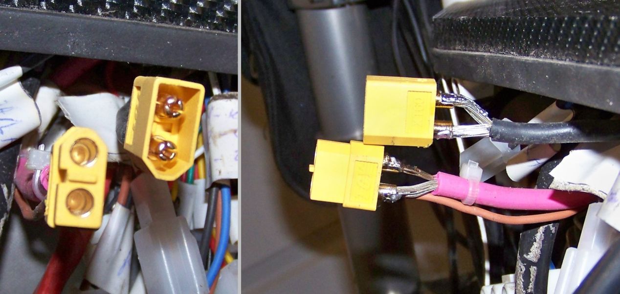 Я для питания контроллера 18 фет использовал в силовых проводах два XT60. Меньше токовая нагрузка на разъем и паять значительно легче.