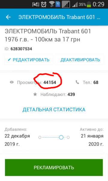 Начиная с 22 декабря по сегодняшний день на олх(благодаря тому, что указал 18 год) объявление набрало почти 80 тыс просмотров. Реклама, в моём случае ТОП на 30 дней, не добавила абсолютно ничего)) На RST для сравнения сегодня всего 1610 просмотров. В ходе данного "исследования" выяснилось, что примерно 0.2% населения Украины узнало про это авто. Кстати в объявлении была указана ссылка на мою тему постройки. Интересно узнать у админов, как там статистика по сайту хоть немного поднялась?)) Немного забавных комментаторов: