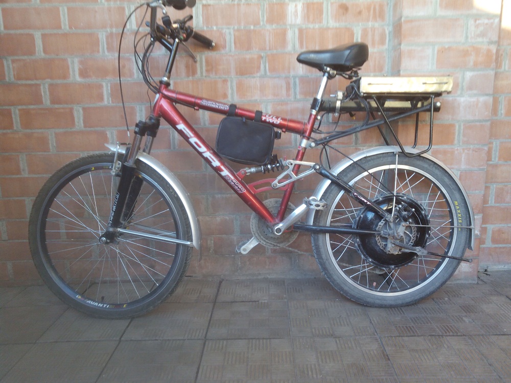 В связи с приобретением электромобиля продам два электровелосипеда двухподвеса на стальных рамах Fort. Красный самый мощный, едет 55 км/час при напряжении батареи 20S липо (около 80 вольт), передняя вилка Suntour XCM, задний амортизатор с регулировкой отскока, заднее колесо 24", покрышка Maxxis 2,5", обод AlexRims широкий, усиленный, дисковый тормоз, мотор-колесо от Электры 1000 вт, диаметром 300 мм, контроллер на 30 ампер на фетах 4110, с рекуперацией, тремя электронными скоростями велокомпьютер и прибор VK-2 с LCD от Вольты, измеряющий, в числе прочего, напряжение батареи, алюминиевые шатуны, сумка для вещей, задний багажник усилен, выдерживает груз 25 кг (проверено неоднократно), можно повесить велоштаны. Ящик из полированной нержавейки под контроллер и пять народных котлет. На руле - пневматический сигнал, зеркало заднего вида, крепление под фонарик, электронный переключатель скоростей, кнопка предзаряда емкостей контроллера (зеленая), кнопка включения слаботочки (зажигание) красная. На аккумуляторном ящике установлен тумблер на 40 ампер для полного отключения батареи.