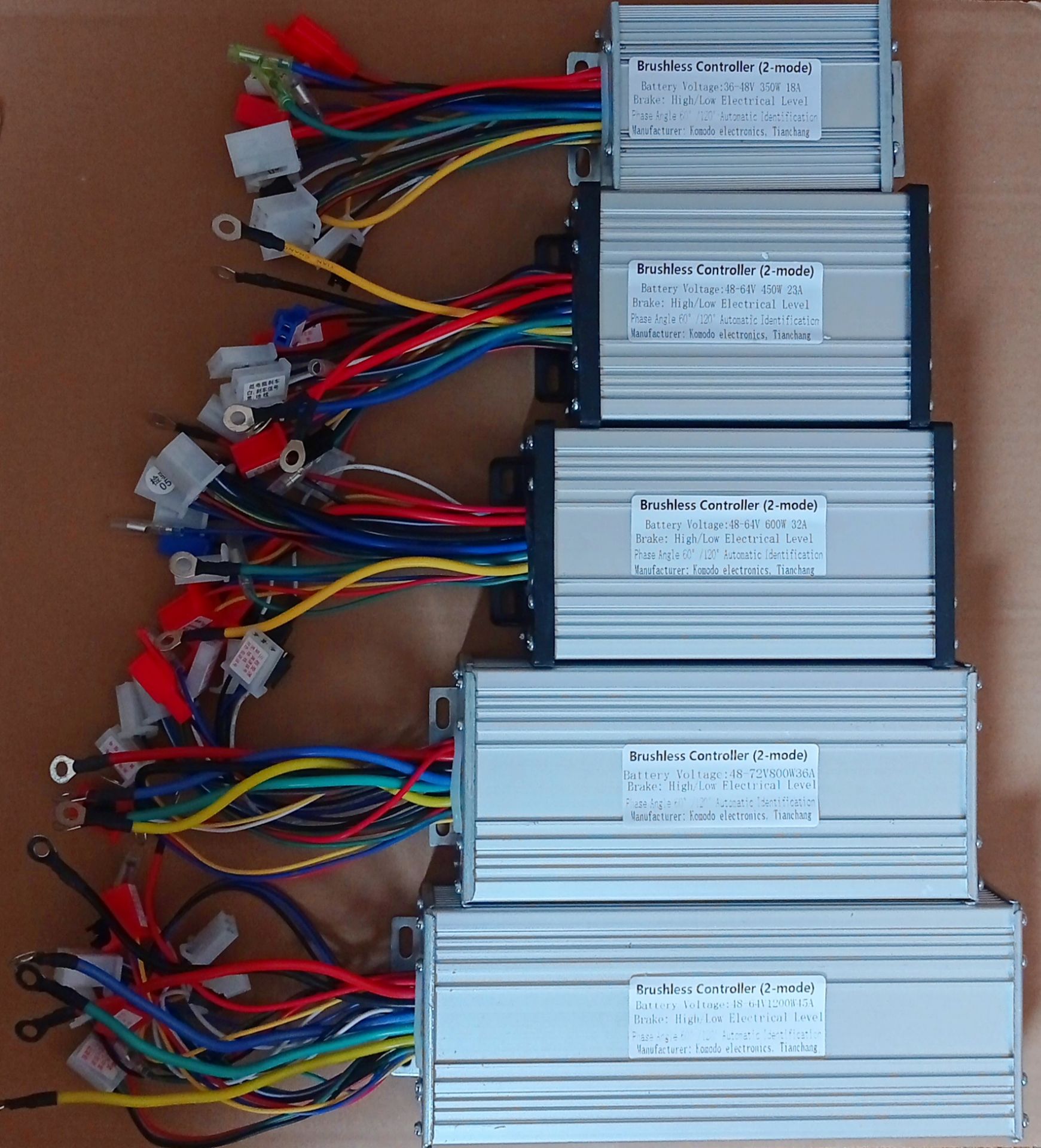 - 12 фет, 600Вт, 32А, 48/60В Функції: три швидкості, рекуперативне гальмування (не активоване), круїзконтроль(не активованне), визначення кута фаз і холлів ( режим самонавчання), безхольний режим, задній хід - 850грн