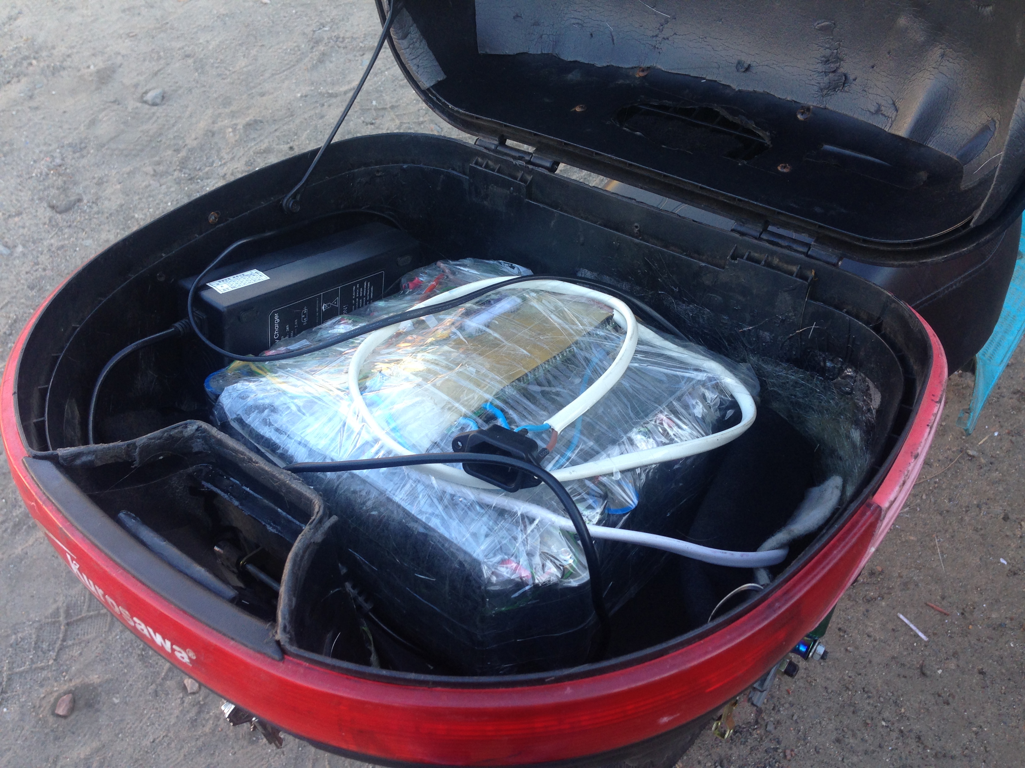 База Honda PAX. По сути продает он электронабор, который кстати взял две недели назад, а скутер отдает в подарок. Было у него (у нас) желание сделать из нее "конфетку" но его выезд в Польшу идею загубил на корню. Все комплектующие на свежей гарантии, им и месяца нету. Батарейка собрана на баночках LiFePO4 заказаны на алиэкспресс, там и BMS куплена. Зарядное, мотор, контроллер, ручка газа куплены на VoltaBike. Моторчик кстати - очень хороший, очень жаль что когда собирал себе скутер таких не было, тяга супер, скорость отличная, вообще бесшумный, на максимальных оборотах вообще не слышно, с места трогается плавно и очень тихо!) Батарейка - банки LiFePO4 2*32650(2.6ah)+2*26650(4.4ah) Общая емкость 14ампер/часов тесты Imax B6 при разряде 2A, по тестам проехали 30км в нормальном режиме, вне города, и заряд еще оставался. Может кто захочет довести до ума скутер в целом, или ищет нормальный набор для переоборудования своего имеющегося скутера/мопеда. Пластик на скутере для своих лет в очень хорошем состоянии, разве что нет боковинок под сиденьем.. Скутер заберу к себе в гараж.