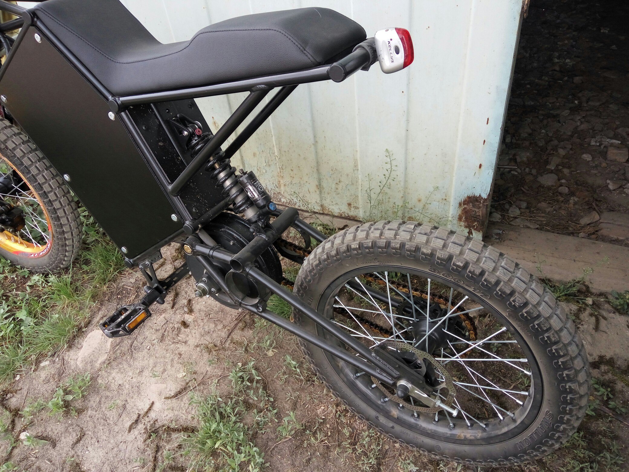 Мото вилка, повне регулювання, аморт Fox DHX RC2(відскок, підкачка, компресія) з 650 пружиною, світло, сигнал, ПаверВочер, контроллер Kelly KLS 7230s, батарейка 21s1p, 28Аг(2.1кВт*г), мотор типовий для цієї рами, переднє мото-гальмо, заднє - додаткова ручка аналогового регену на кермі, колеска обидва на 17", дорожня гума, задня зірка на 44 зуби, максималка по рівному на 3кВт - близько 60км/г, з невеликої гірки до 85км/г, або 85 на більшій потужності. Зарядний пристрій програмований, 120В 25А. Барахол теж є, цікавтесь, що вам треба, розкажу, покажу) Пробіг в байка мінімальний, близько 150км, все нове.