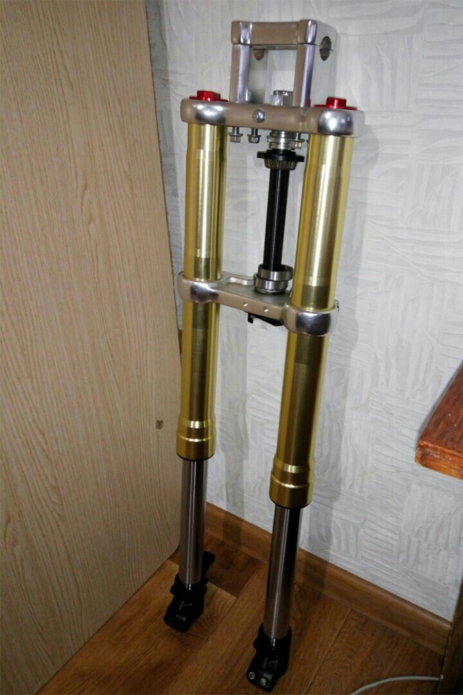 Мото вилка, повне регулювання відскоку/компресії, аморт Fox DHX RC2(відскок, підкачка, компресія) з 650 пружиною, передня фара, сигнал, ПаверВочер, дозволяє слідкувати за швидкістю, потужністю, пробігом через смартфон на Анроїді через блютус, контроллер Kelly KLS 7230s, мотор типовий для цієї рами, переднє мото-гальмо, заднє - додаткова ручка аналогового регену на кермі, колеса обидва на 17", дорожня гума, задня зірка на 44 зуби, мотор номінал 3 кВт, максималка по рівному на 3кВт - близько 60км/г, з невеликої гірки до 85км/г, або 85 на більшій потужності. Зарядний пристрій програмований, 120В 25А.