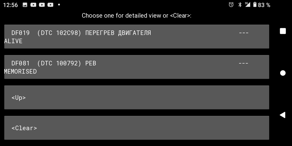 2) Періодично 2-3 рази на день машина при русі вирубається, загоріється "stop" пропадає тяга і зупиняється на дорозі у самих непередбачуваних місцях, це десь тиждень назад зявилося. При цьому у блоці РЕВ активна помилка DTC102C98 (DF019), (Ця помилка трактується як перегрів двигуна), але буває що виникає на холодну із ранку при проїзді перших 100м. Якоїсь закономірності не можу зрозуміти. Єдине треба виключитись почекати 10-15 хв. включити, потм можна їхать.