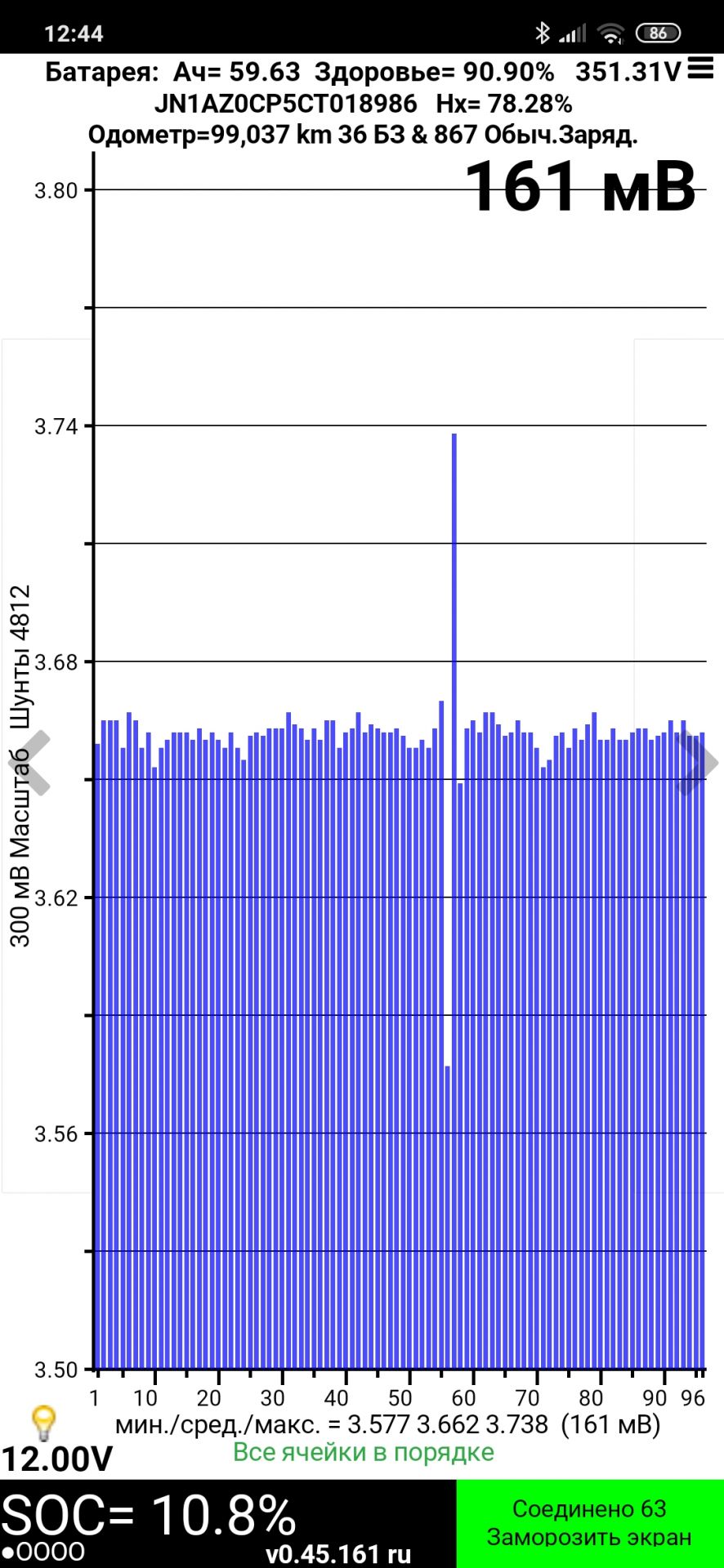 По ліфспаю показую великий розбіг по 56 та 57 комірці (фактична напруга на кожній комірці одинакова)