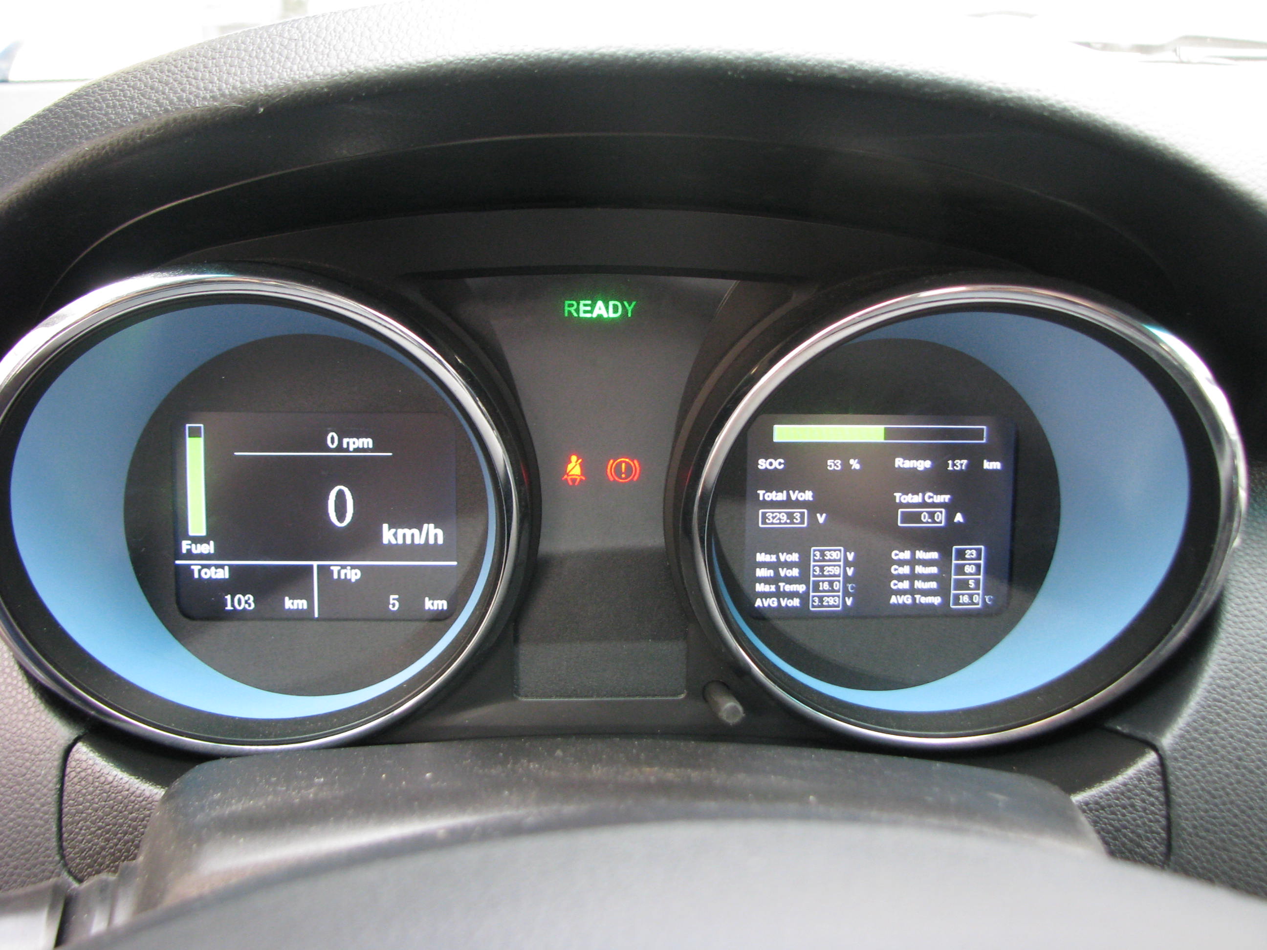 На приборной доске два экрана - правый относится к показателям батареи, левый - к движению. Левый столбик показывает уровень топлива в печке. Вид экрана можно изменить перепрошивкой.
