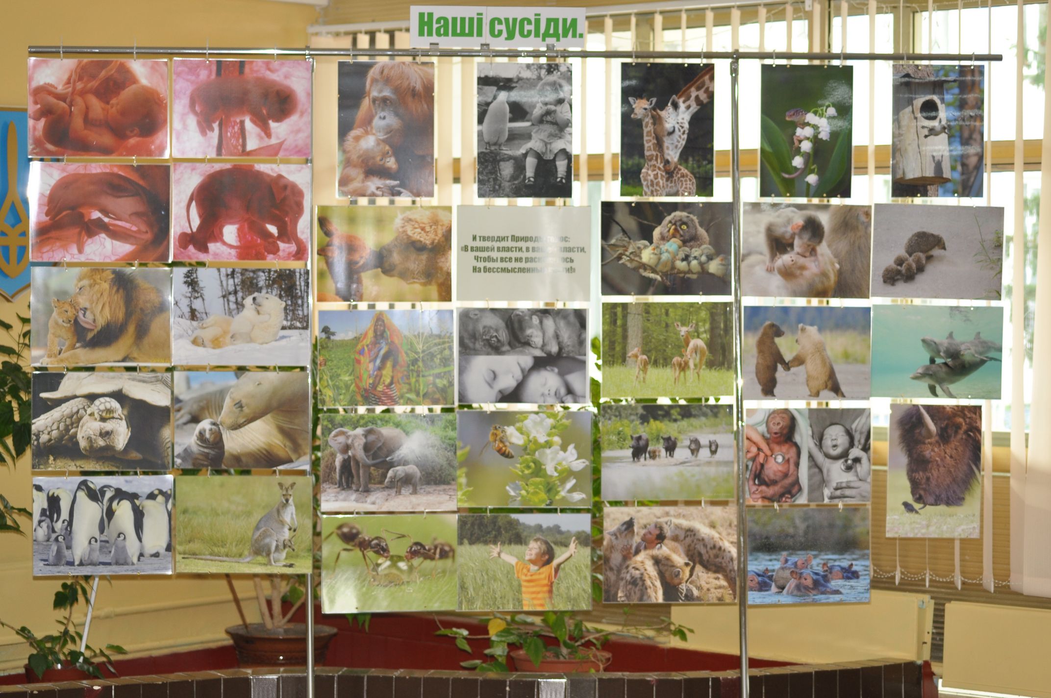 К нам обратился директор ОО научно-исследовательского центра "Зелёная библиотека". Он занимается популяризацией экологии среди школьников. Сейчас своими силами он сделал 4 фотовыставки (ну я бы назвал это больше стендами наглядной агитации) и выставил её в 3х школах и посольстве США (не спрашивайте почему - я не спросил). Одна фотовыставка состоит из 4х стендов. На каждом стенде ~16 листов формата А3 с информацией наподобие вот такой