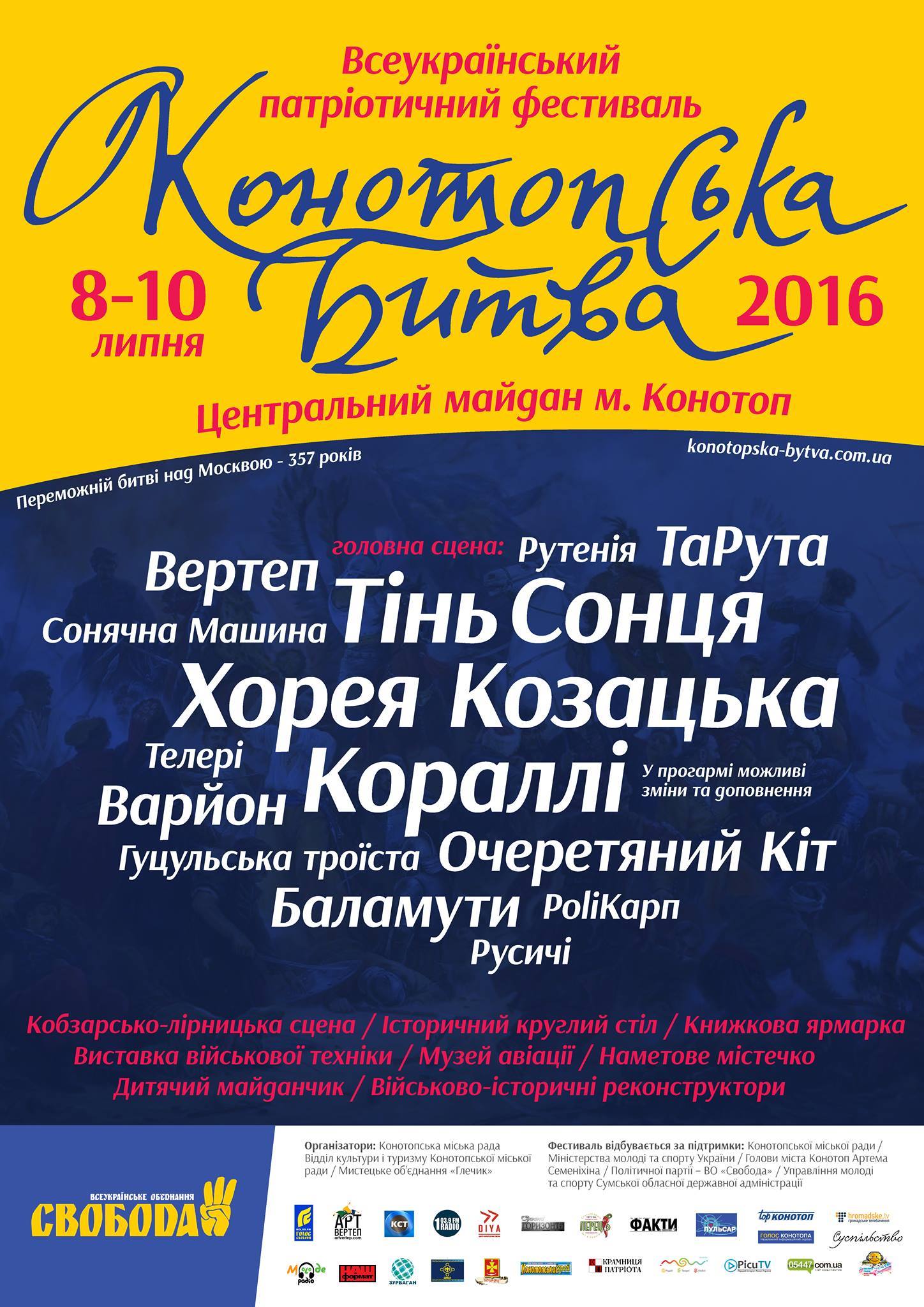 15:00-22:00 Етно-рок концерт. Головна сцена, центральний майдан м. Конотопа: