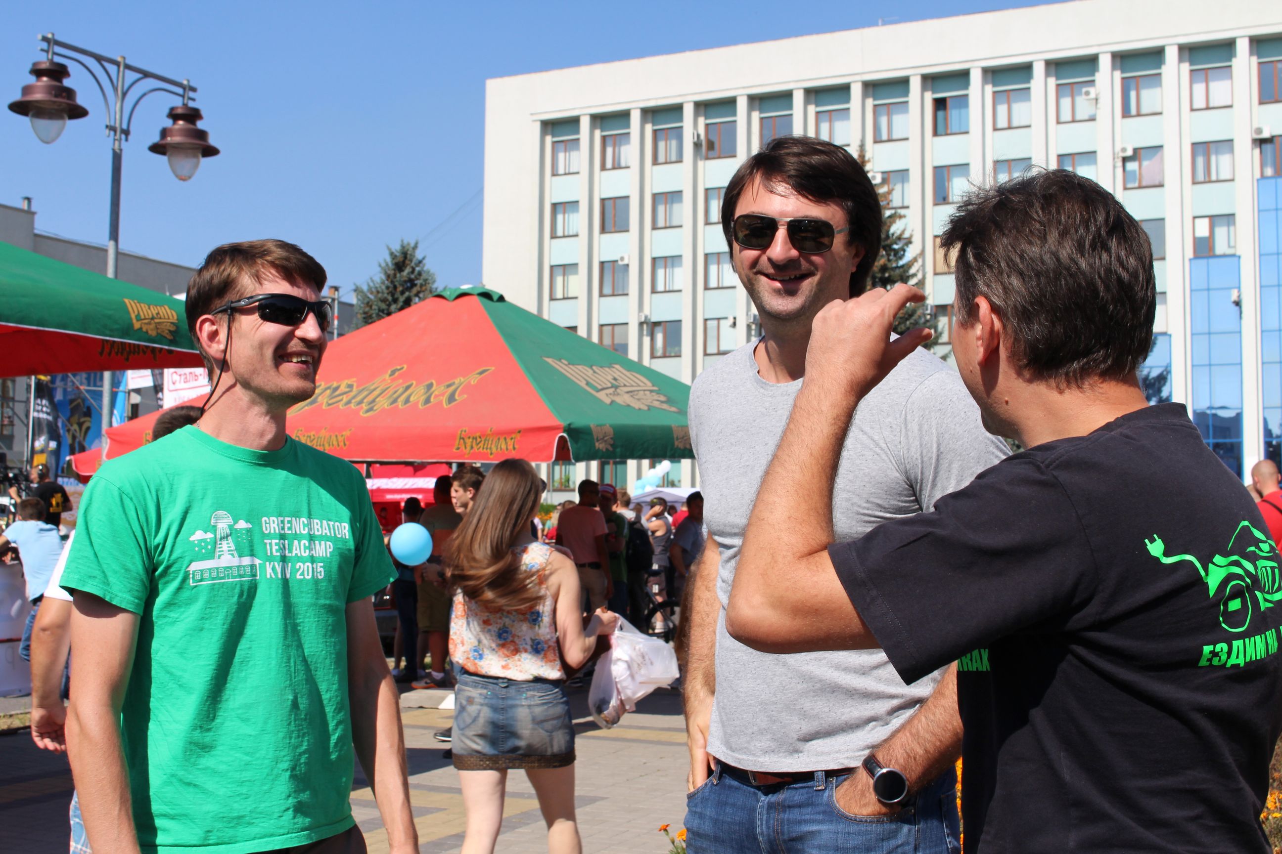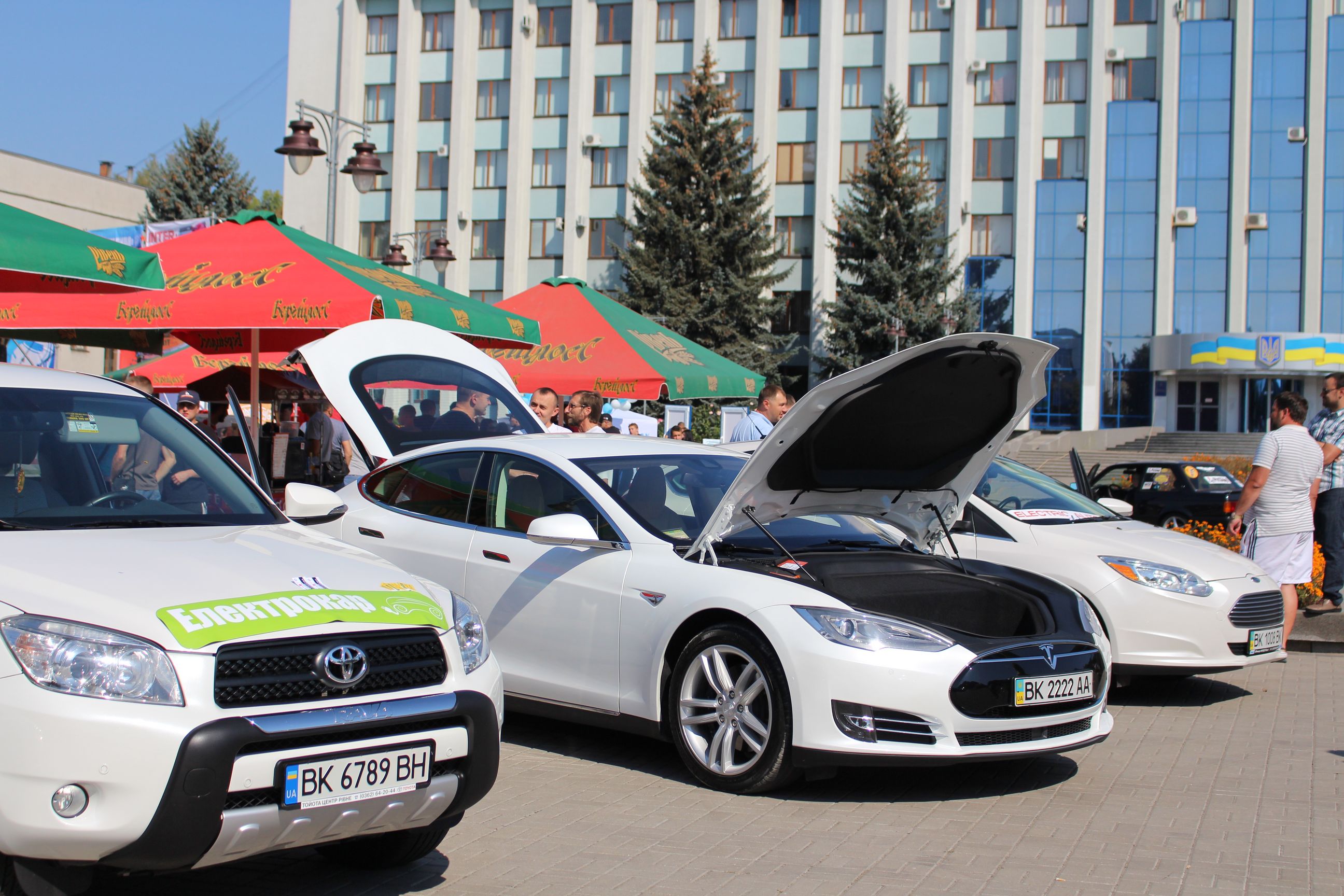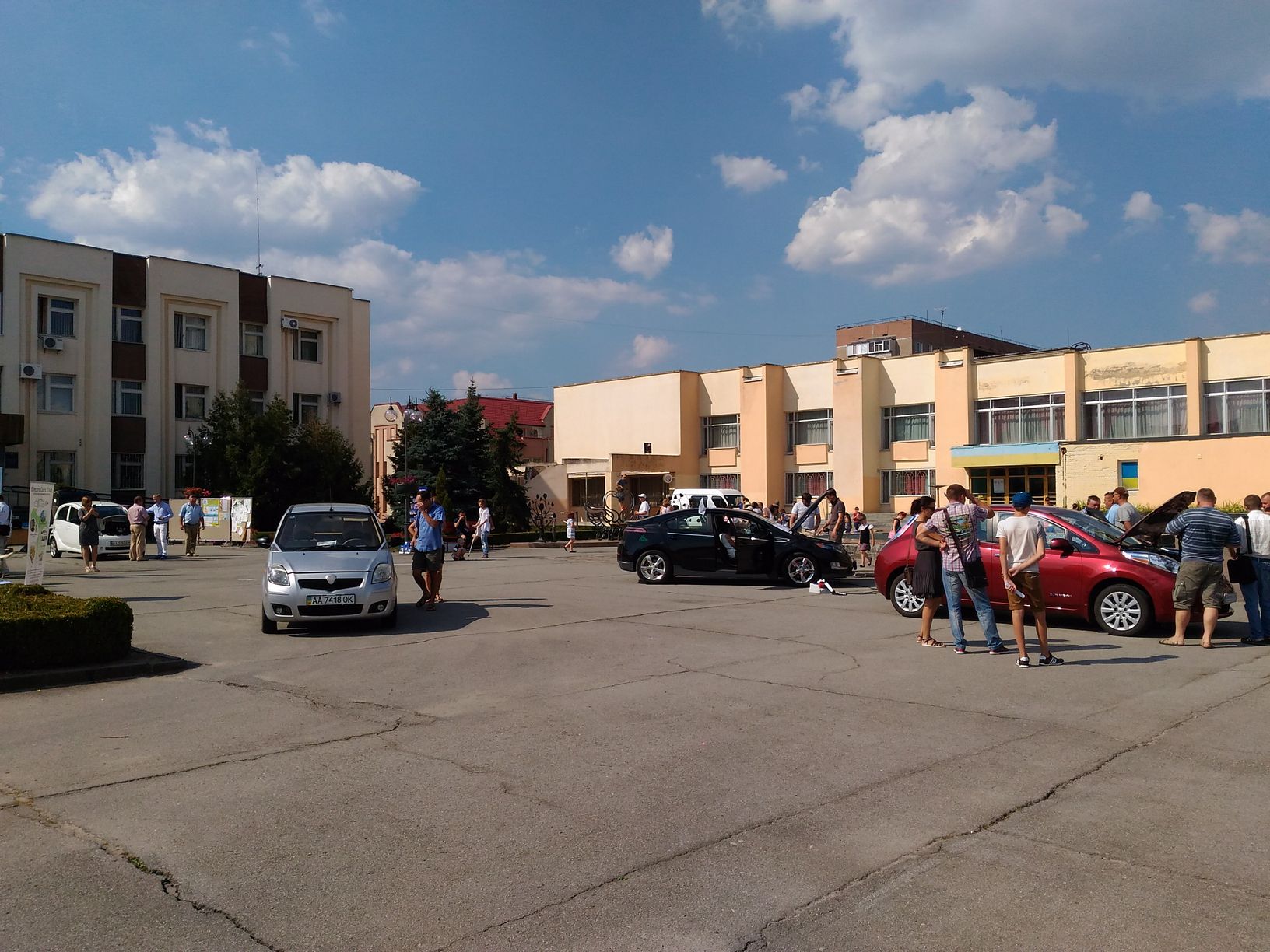 В субботу, 10 сентября, мы стояли на центральной площади Ровно. Там проходил "Кубок Большая медведица" по автослалом. В нём кстати, принимал участие владелец Теслы, но не на Тесле (огромное ему спасибо за предоставленное жильё, и вообще, что дождался нас к часу ночи) Соответственно Тесла стояла весь день открытой для обозрения. Народ как-то не оценил такого подарка и боязливо обходил её стороной