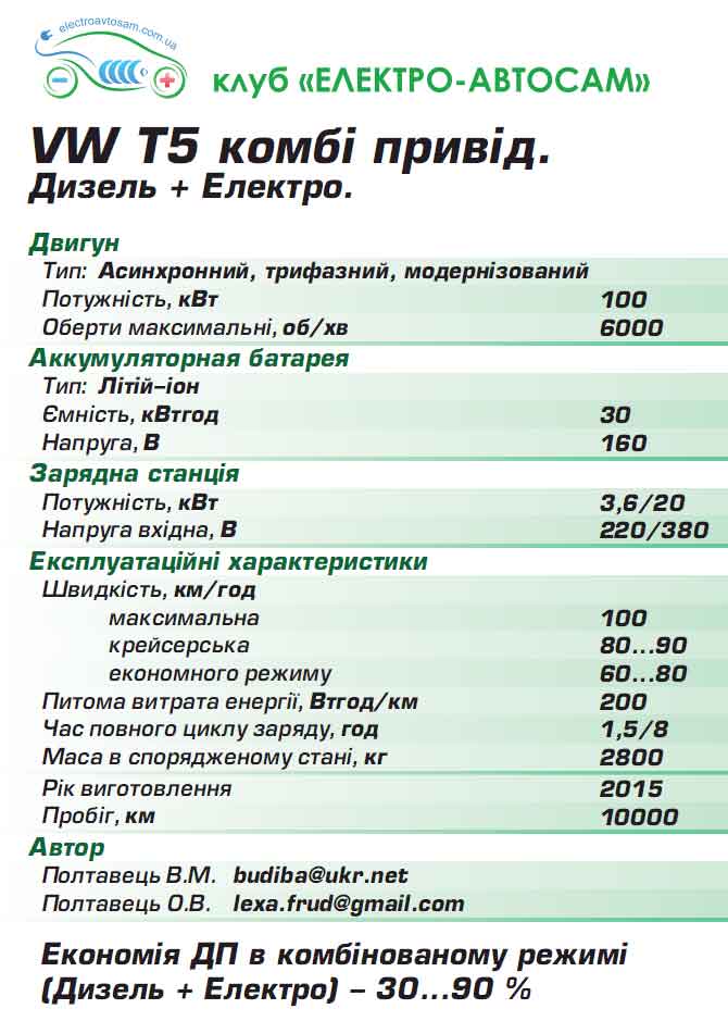 Досвід переобладнання мікроавтобуса Volkswagen T5 у комбі-привід.