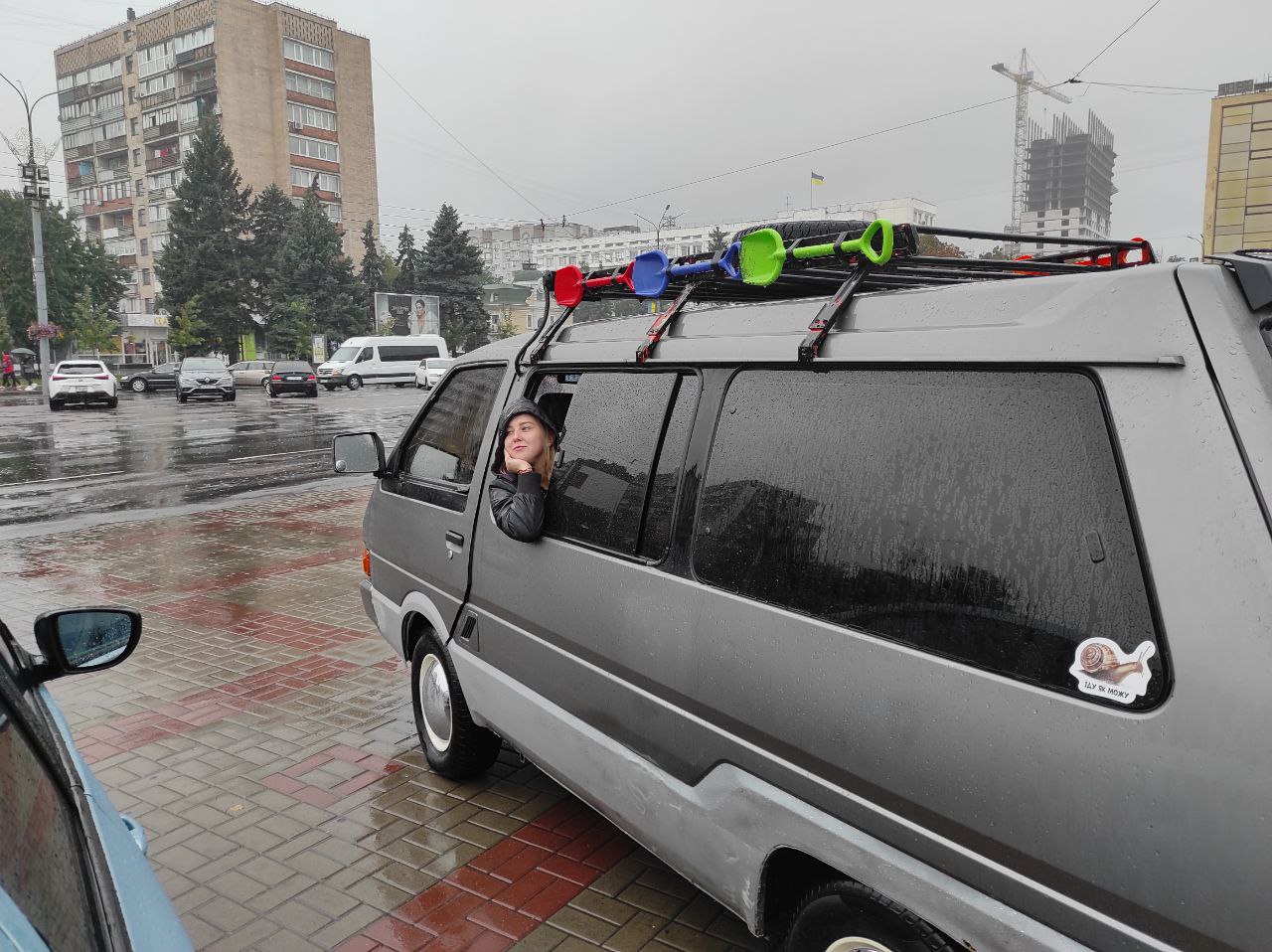 Погода мешала, но мы не сдавались! Особенно Чен с Днепра, который на электробайке ехал 20км под ливнем(!) по Черкассам с флагом клуба. Этот клубный флаг теперь хранится у него.