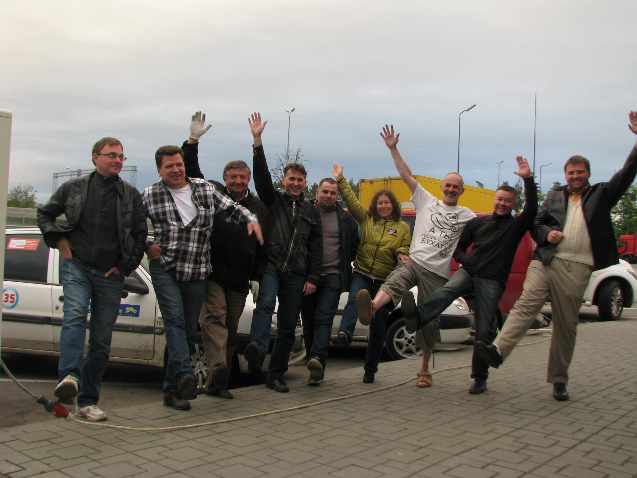19-30 Т5 Комби приехал в Калиновку. Сделали фото на память. Все четыре Сакса и Лиф выехали на Киев. Два остальных Лифа уже в Киеве дома. Скоро в Калиновку приедет voraks, чтоб забрать "полицейский" электровелосипед.