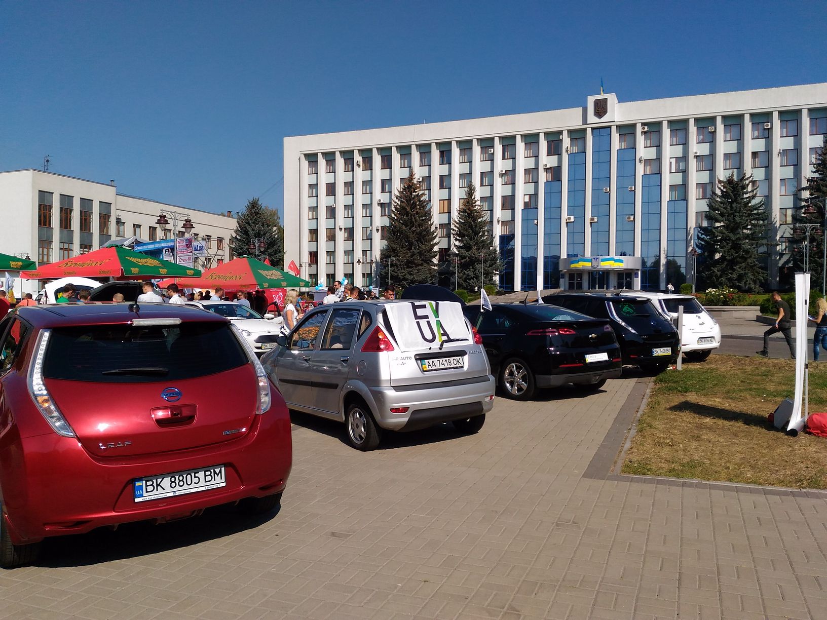 В Ровно, я смотрю, собралась своя ячейка владельцев электромобилей. Так как все представленные экипажи к вечеру собирались вместе отмечать чьё-то день рождение. А машин было немало - Тесла, Рав4ЕВ, пару ФордовЕВ, много Лифов и даже тот Шевроле Вольт тоже был из Ровно. Мы заметили как мимо проехала даже РеноЗоя, но к нам не заезжала. К середине дня подъехал Назар.