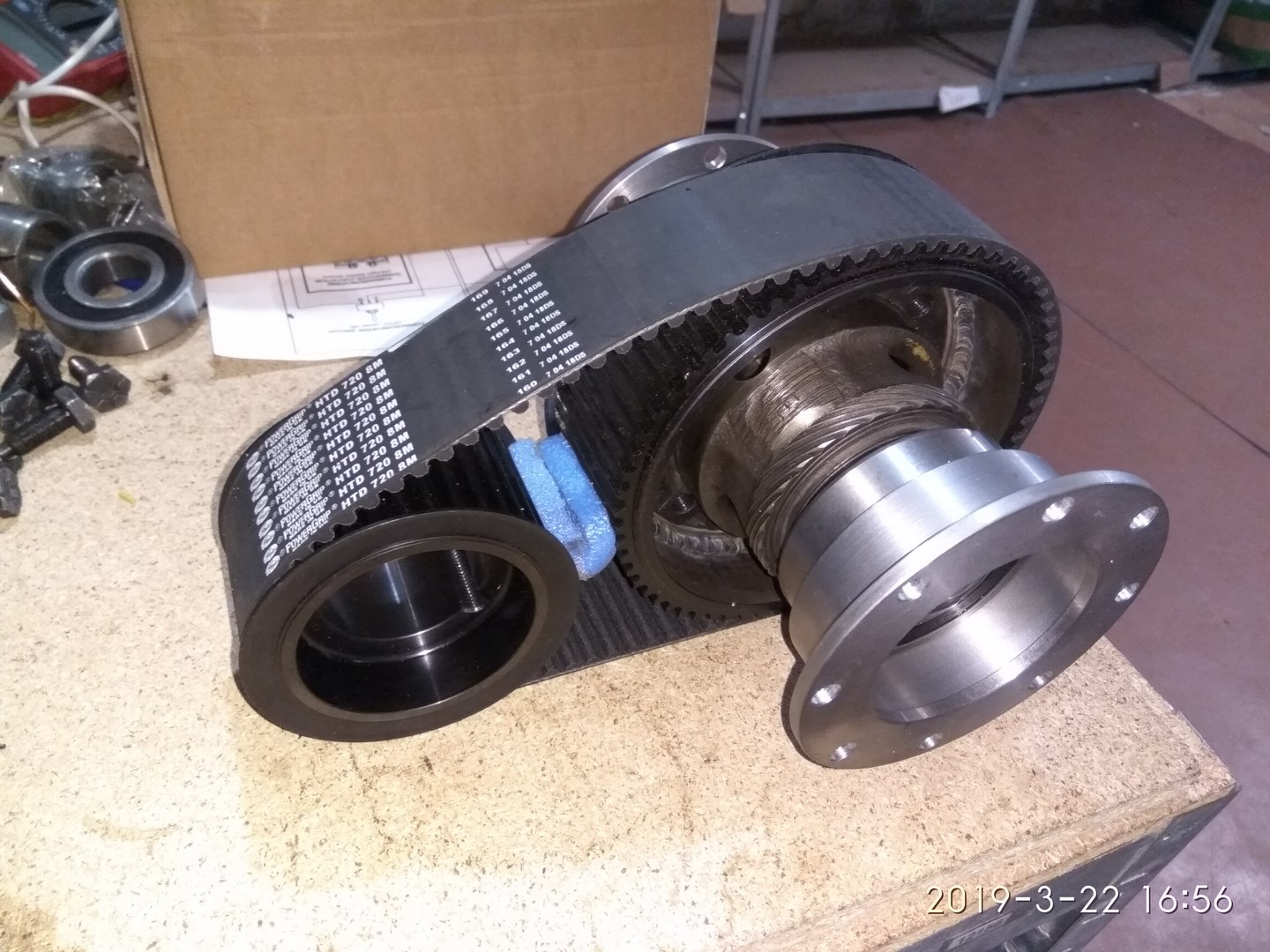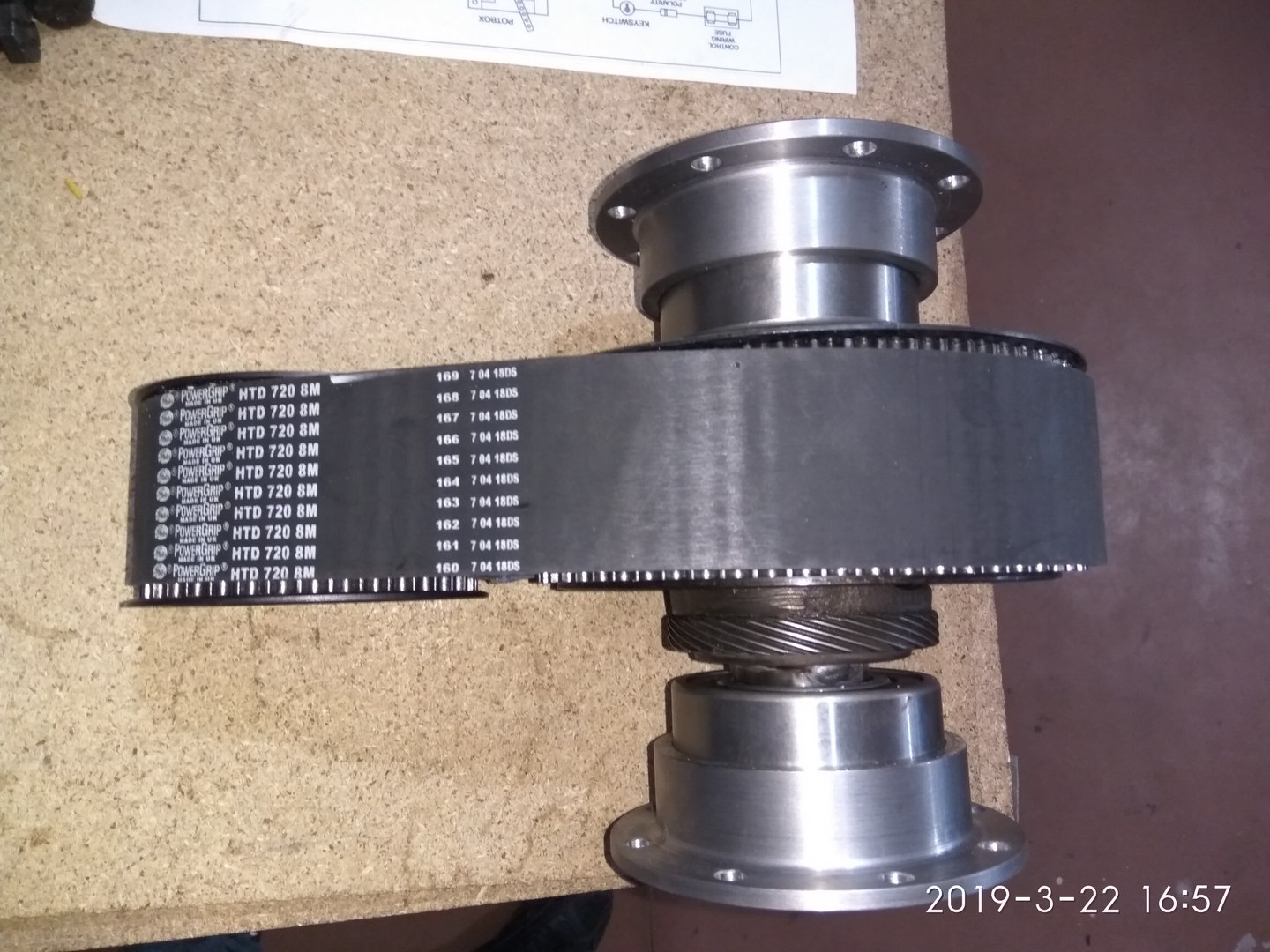 немного продвинулся с приводом, выточили фланцы подшипников и приварили зубчатый шкив. за одно приехал приводной ремень. далее буду проектировать раму и корпус самого привода. пока придется моделировать из фанеры, а потом уже переносить на металл..