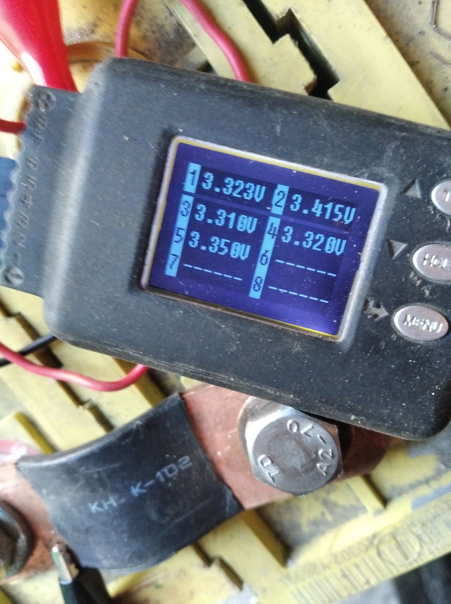 Так я с лиферами не работал, я к титанату привык. Ладно я убрал ещё две батареи и заряжаю дальше. Уже больше киловатта вкачал. Ещё селлог один нашел, на 3,6 поставил чтоб пищал, специально подключил к той банке которая явно быстрее других заряжается, по ней и буду ориентироваться.