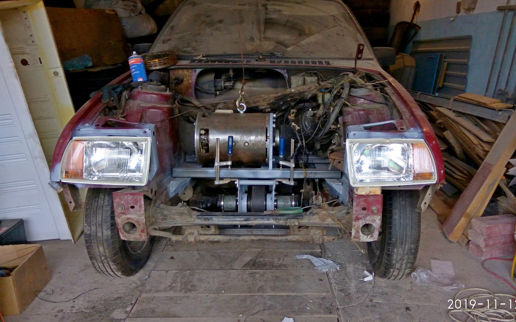 вчера вечером не удержался, накинул двигатель на раму, выставил раму, соосность привода, подключил к 12В аккуму. работает все мягко и тихо, а не так, как было до того, со скрипом и треском. кстати, пока выставил конструктив так, что обошелся без натяжных роликов на обоих ремнях. далее в планах: крепление рамы и привода к машине, установка педали газа, контроллера, переключателя направления вращения ЭД. силовую батарею временно кину на место переднего пасс. сиденья.