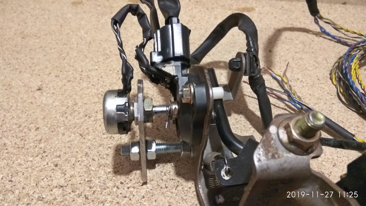 привет, друзья! сегодня закончил с педалью газа, в кратце о том, что получилось. донором послужила педаль газа с авто Мазда 323, куплена на ОЛХ за 150 грн. в целом выбор донора оказался очень удачным, в первую очередь конструктивно по ряду причин: - отсутствие жесткой механической связи вала педали с приводом резистора, что позволит экстренно отключить контроллер в случае поломки или заклинивания резистора - наличие штатного места для установки концевого выключателя. был куплен новый Z15G1307 за 130 грн из недостатков: пришлось укоротить, изогнуть и повернуть вал педали. родной резистор разрезал и удалил токопроводящие дорожки. оставил сам корпус с осью и пружинным приводом. для крепления резистора СП3-30 15кОм использовал металлическую пластину толщиной 3 мм и болт с гайками. угол поворота качалки привода составляет примерно 50 градусов, что обеспечивает резистивность 0-6 кОм. для получения рабочего напряжения 0-6В, на резистор надо будет подать напряжение ок. 22В в итоге вопрос с педалью можно считать закрытым, цена вопроса составила 280 грн.
