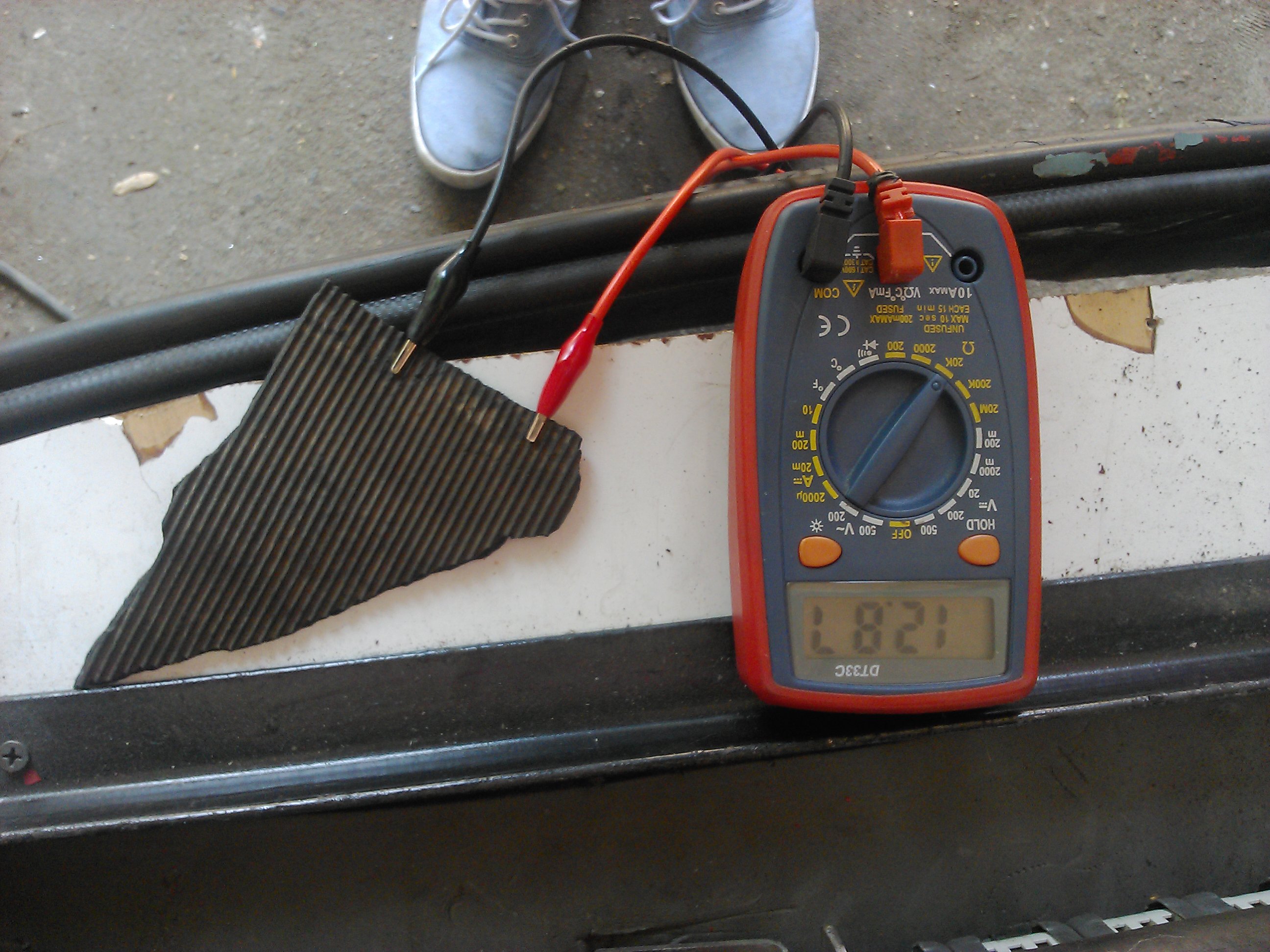 На сегодняшний момент мне не удалось запустить свою электронику, так как были проблемы с питанием в машине. Начал замечать, что когда трогаешь минус батареи силовой и случайно заденешь кузов где нет краски, дергает хорошо током. Проверил тестором, и увидел что плюс идет на кузов. Вчера с товарищем начали искать где же коротит на кузов. Целый день искали, по плюсу все провода просмотрели. Я думал что на входе в шахту (к рубильнику Михалыча), там все заизолировали, вставили кусок ПВХ трубы, что уже точно провода не перетирались об кузов. Все равно нет, тогда полезли к рубильнику, оказалось, что он. Тогда разобрали его, мне показалось что там только шайбы (которые поджимались гайками, и держали рубильник) могли подкорачивать, убрал их. И вроде бы убрали КЗ. Потом сидим в машине, заряжаемся, я заправляю резиновый коврик обратно в шахту, и смотрю что проскакивает очень маленькая искра когда ковриком по контактам рубильника. Сказать, что я удивился - ничего не сказать. Начинаю мерить тестором, есть питание на козове, потом товарищи говорит еще раз по меряй, и уже нет питания! Оказалось что просто резиновый коврик подкорачивал!!!! Целый день на это ушел. У него есть конечно сопротивление около 8 кОм, но все равно он подкорачивал, как так я не пойму вроде бы резиновый!