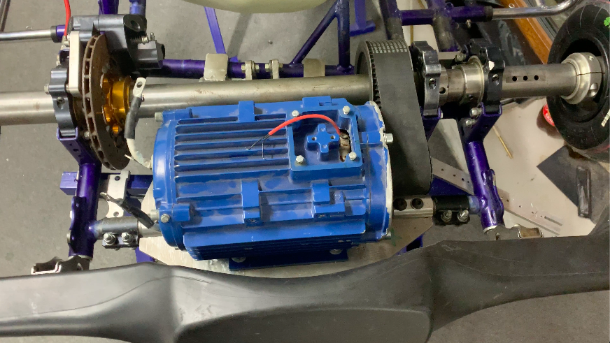На нем установлен один мотор с машины АИР 100л с ремнем