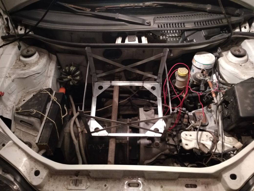 Еще в прошлом году начал заниматься новой батареей, но не успел закончить. Поэтому продолжаю в этом году. Для одной половины батареи ящик практически готов, пакеты (монстры) установлены на основания (все те же стеновые ПВХ панели). Дело за рамой, на которой будет крепиться ящик под капотом. Конфигурацию уже проработал, занимаюсь заготовкой и сваркой с примерками.