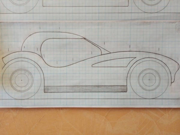 По дизайну, я полагаю, автомобиль будет схож с уменьшенной ac-cobra (кстати при повторении ее геометрии будете иметь почти беспроигрышный дизайн), проверьте высоту крыши, на вашем масштабе, даже водитель, сидящий на полу головой будет выступать за крышу, либо смотрите полу лежачую посадку водителя на автомобилях MClaren F1 или прототипе Stratos, в сети есть чертежи с расположением кресла водителя.