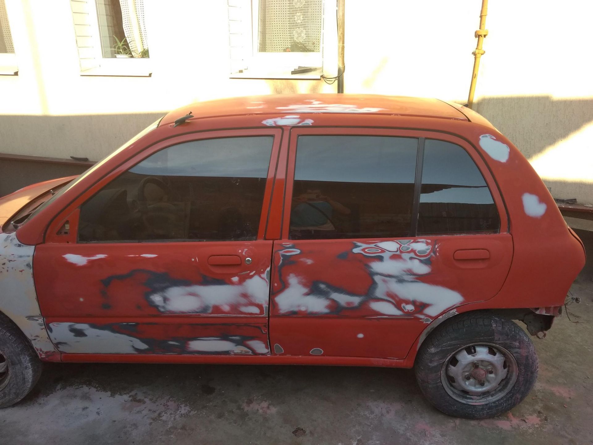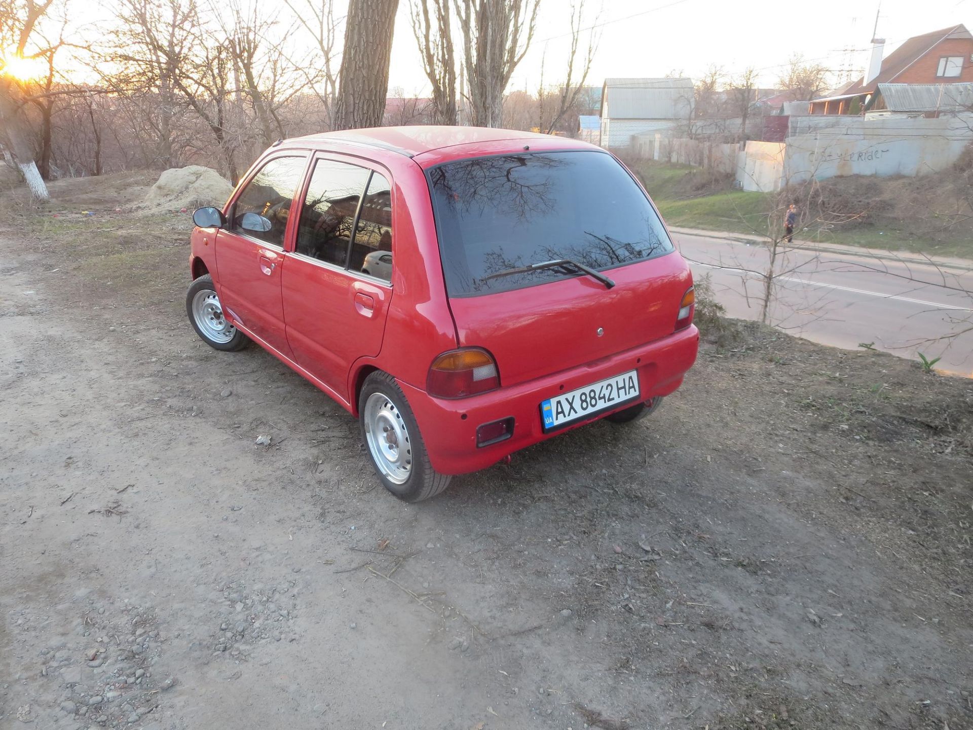 Но эта машинка по ТТХ даже еще легче, чем Cuore. На фотках не так видно, но она совсем крохотная. Я присаживался когда фоткал, чтобы не одна крыша была на фото :D