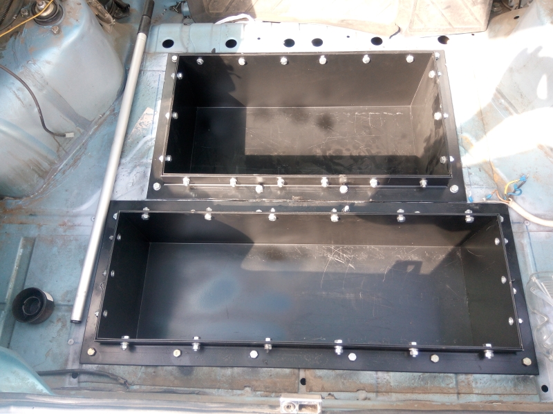 Жесткость вырезанных кусков металла из днища напоминает картон)) Предполагаю что врезка батарейных ящиков не только не уменьшила поперечную жесткость кузова, но и увеличила. Ящики из стали 2 мм в раме из уголка.