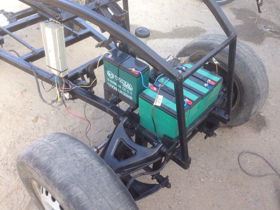 Всем привет! Сегодня продолжил работать над машинкой, примерял рессоры и выварил корзины для батареи. Пробовал замерять максималку по GPS. Батарея разряжена практически в ноль была, на банке под нагрузкой было 10 вольт, машинка с такой батареей поехала уверенных - 35км/ч. Думаю что завтра на полностью заряженной батарее она поедет свои 40км/ч!) Самое интересное что заметил, при том что батарея просто в кизяк севшая - старт очень резвый, колеса даже пробуксовывают :lol: