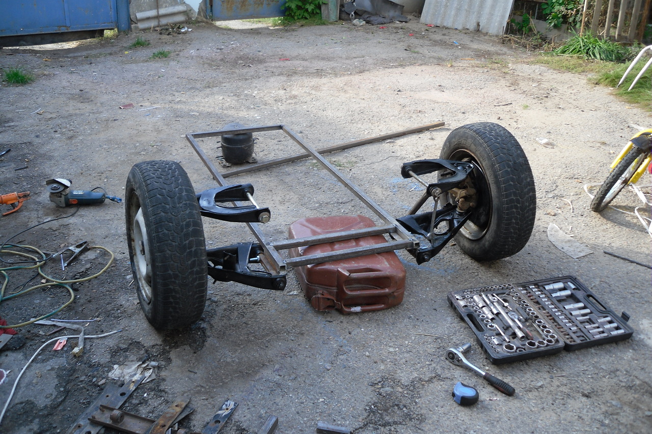 Підвіска макферсона мені теж імпонує, але вона за рахунок стійки змінить конфігурацію рами (висоту). А ми задумали невисоку приземисту платформу.