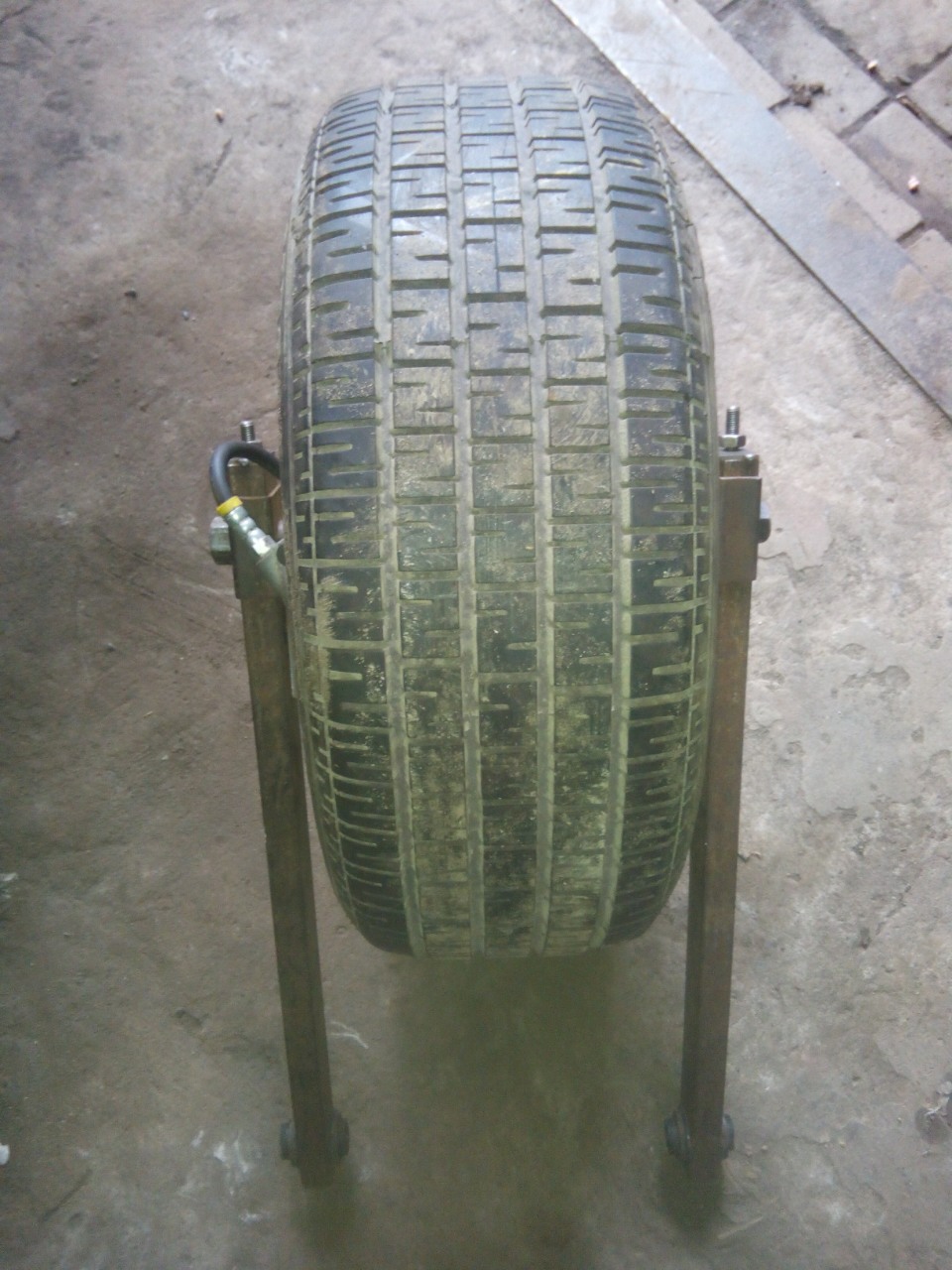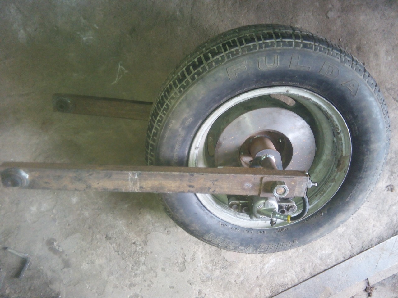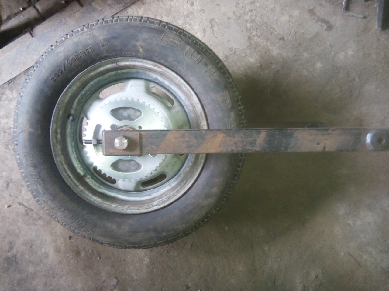 З заднім колесом теж трохи повозились. Всі три колеса задумали взяти у 13".Найширше яке довелась нам знайти за недорого було 205 на 60 . Щоб надати колесу більшої ширини довелось розрізати диск і нарощувати на 40мм з допомогою полоси.