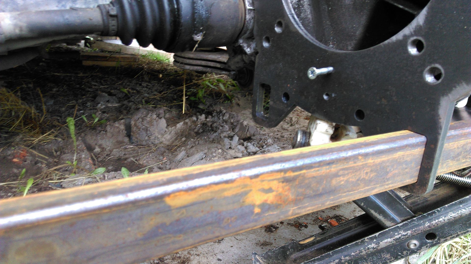 На данный момент почистил авто от лишней проводки, прикупил новые фары английские переделал на наш стандарт.(старые натерпелись за жизнь - оставил только линзы от их) установил КПП с переходной плитой на место для примерки креплений к подушке двигателя вот здесь - возник вопрос выдержит ли нагрузку моя идея крепления? :?