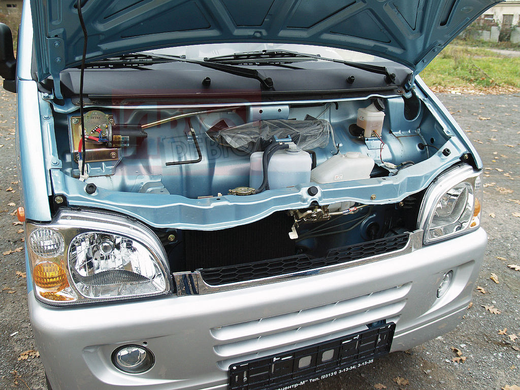 Отвечающий нормам Евро 2 четырехцилиндровый моторчик медленно разгоняет автобусик до 102 км/ч. Это «максималка». Четырехступенчатая коробка отличается «короткими» передаточными числами, поэтому для поддержания динамичного темпа езды приходится орудовать рычагом чаще, чем обычно. Впрочем, ездить быстро на Вулинге не хочется. Управляется он не ахти, кренится на поворотах, а на кочках пустая машина «козлит» как легкий грузовик — о себе дает знать рессорная задняя подвеска. Нет, Wuling предназначен для неторопливого передвижения. Тем более, что при езде по городу автобусик довольно часто жужжит вентилятором радиатора — видимо, у расположенного под сиденьем моторчика напряженный тепловой режим.