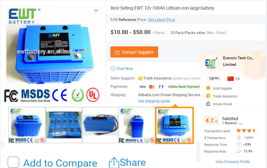 Best Selling EWT 12v 100Ah Lithium iron large battery