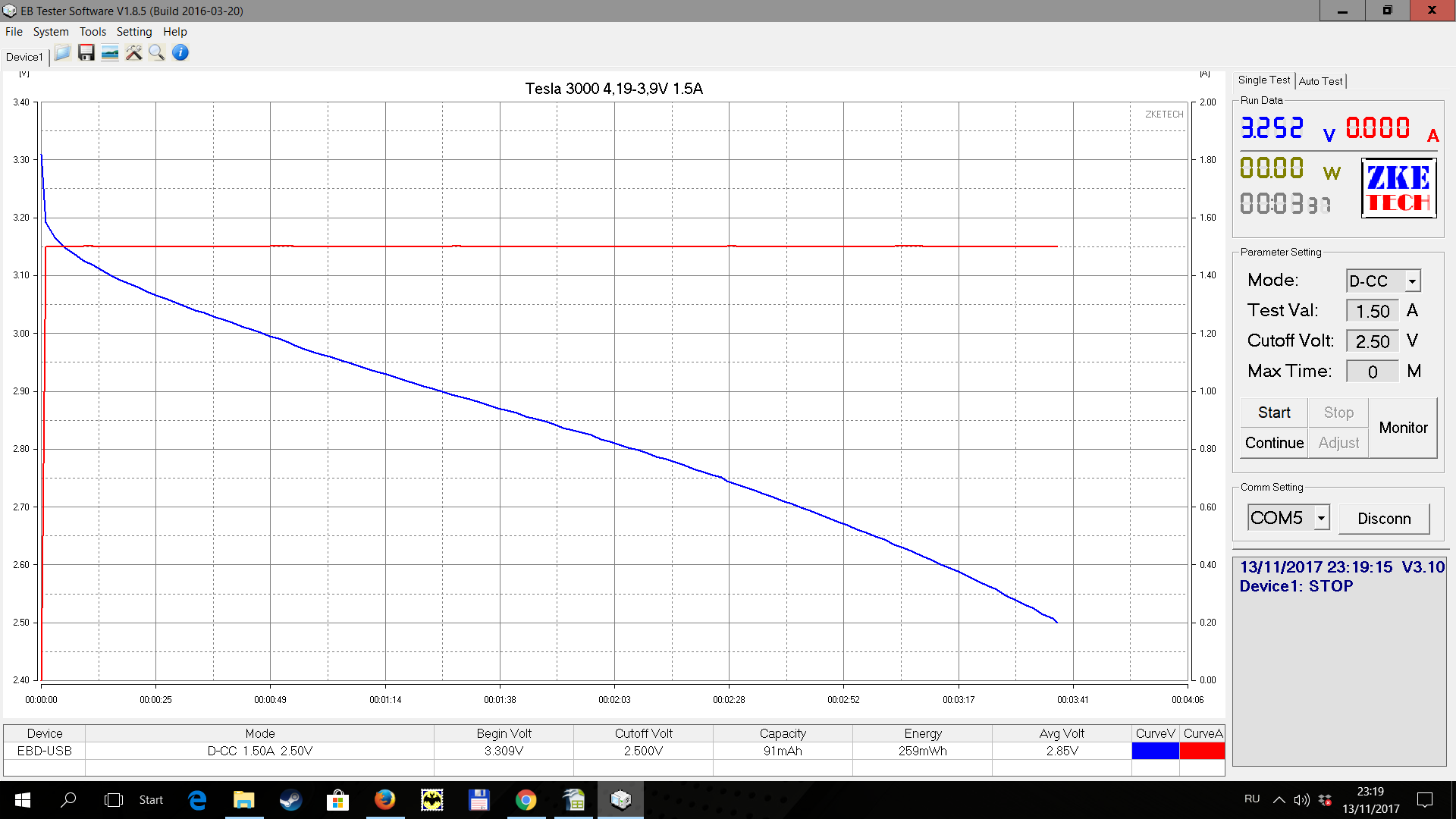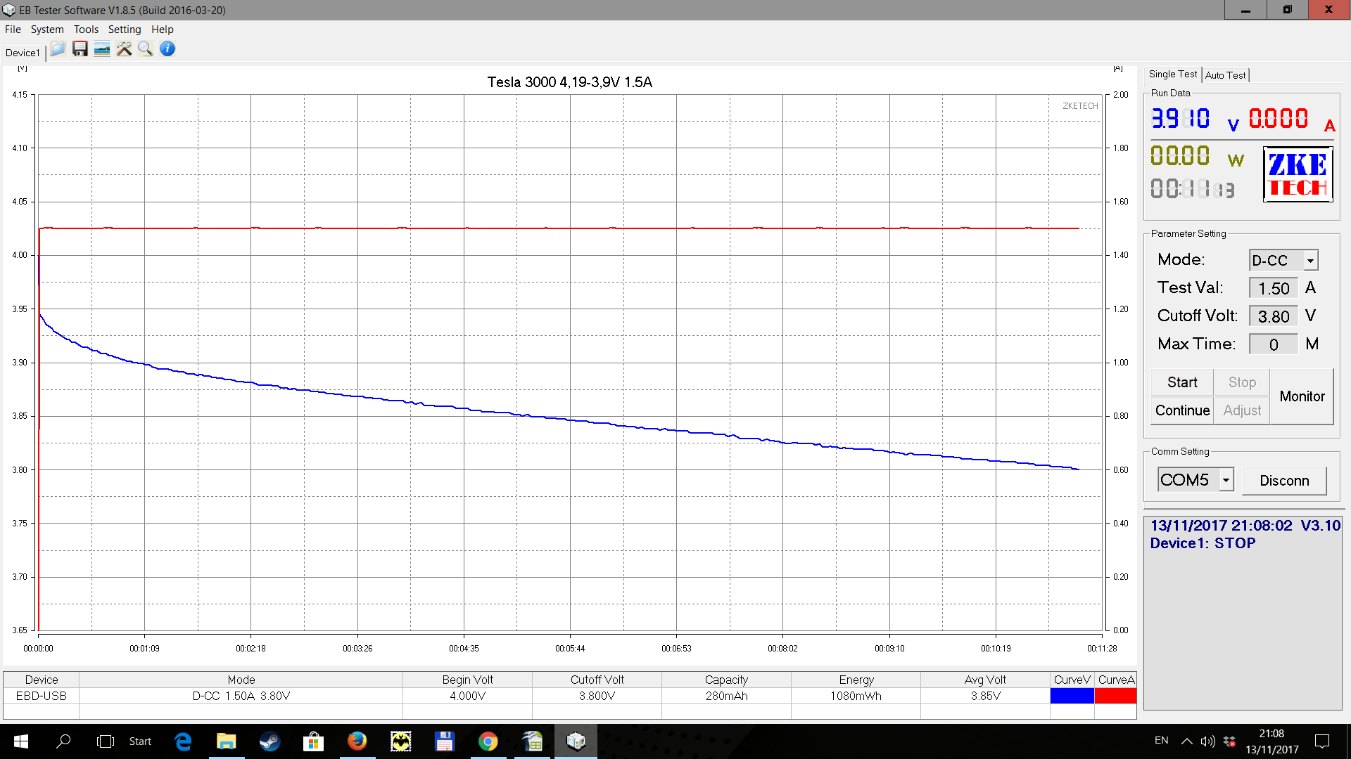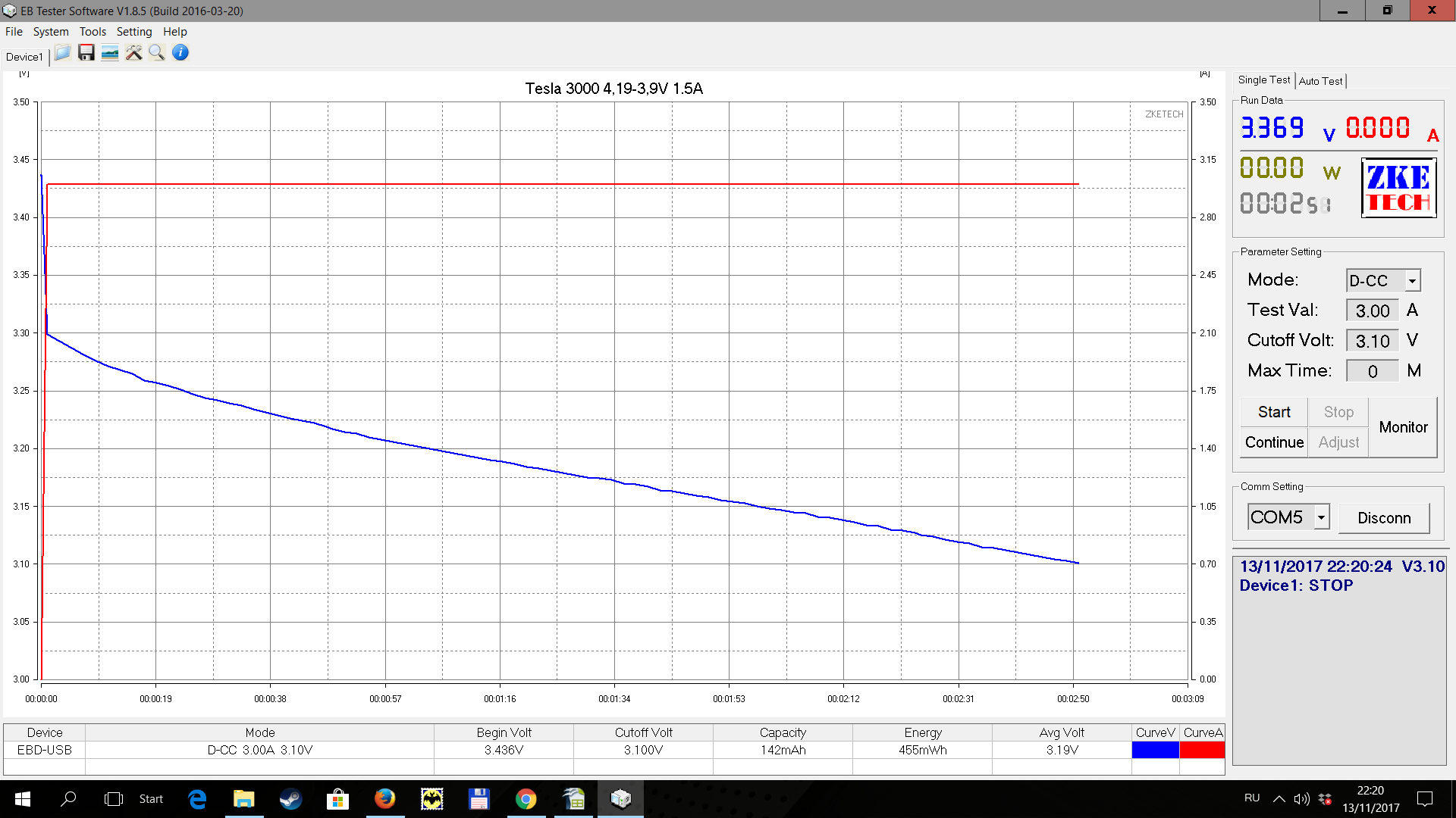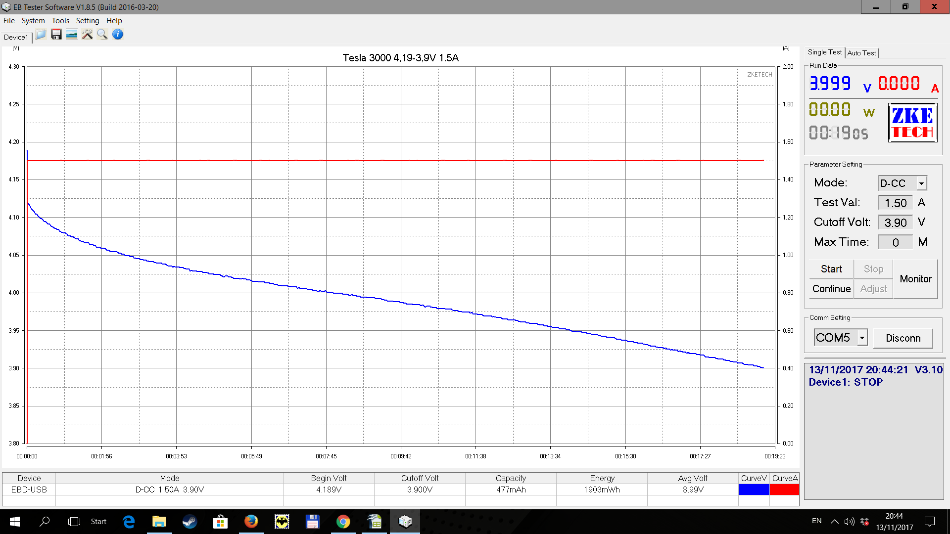 Полная емкость элемента 2950мА. С 4.19В до 3,91В - 760мА или ~25% емкости.