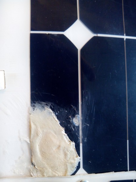 Ну , причина в том, что эти сол.панели полугибкие, а привинченные на двойную кривизну, изогнулись (нагретые), около угла, сверх меры. Беда поправимая. В панели 44 малых последовательных ячеек. Если эту дефектную закоротить, то будет не 42 вольта ХХ , а 41в,