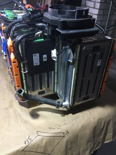 Следующее - ящик номер 2. Состоит из семи пятиячеечных модулей. Арматура крепёжная изменениям не подверглась. Также имеет охлаждающе-нагревающую пластину. Соответственно семь вспомогательных плат бмс. Изготовлен из части нижнего металлического поддона исходной батареи. Устанавливается в заднем свесе (ранее там была ниша в полу багажника и «банка» выхлопной системы. Крепится к задним лонжеронам и дополнительным поперечным усилителям. В основном это резьбовые гайки, иногда шпильки. Верхней крышкой выступает окно-люк в полу багажника.