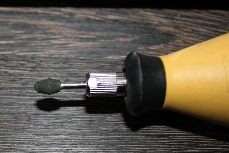 Полученный кирпичик нужно спаять и это достаточно ответственный момент. Зачищаю место пайки резиновой абразивной насадкой для дремеля.